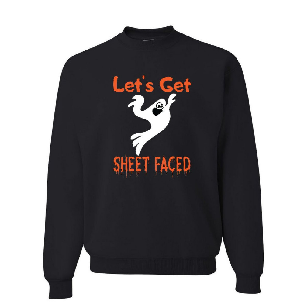 LET'S GET SHEET FACED sweatshirt funny drinking ghost halloween boo sweater black