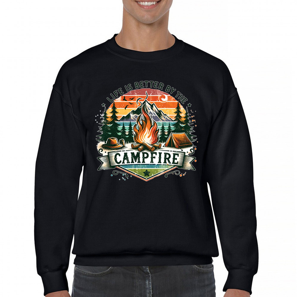 Life is Better by the Campfire captures outdoor adventure, wilderness vibes, campfire moments, and nature escapes for travel and camping fans.