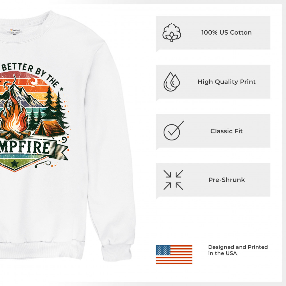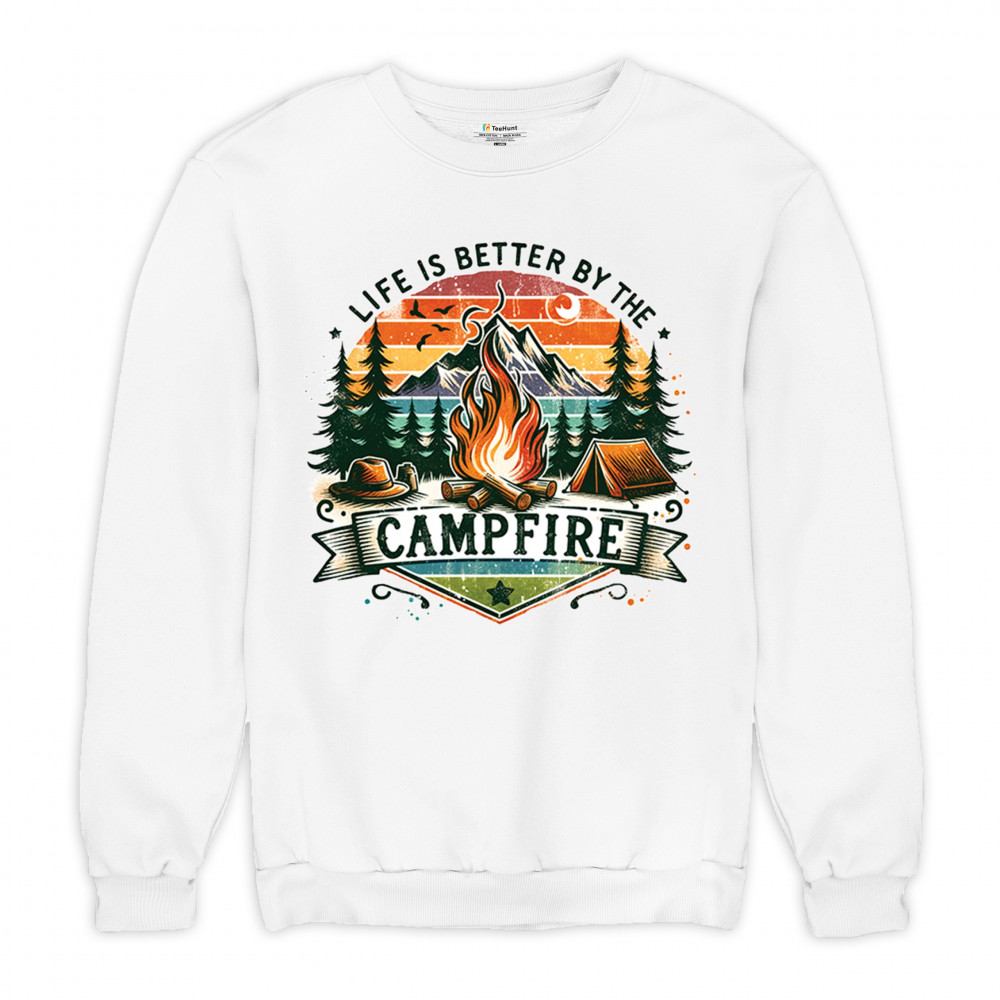 Life is Better by the Campfire brings rustic charm and outdoor adventure together with a glowing fire, mountain scenery, and pine forest. Ideal for forest lovers, campers, and national park explorers, this design evokes wilderness vibes, tent life, and the thrill of travel. Great value for anyone who believes adventure begins under the stars.