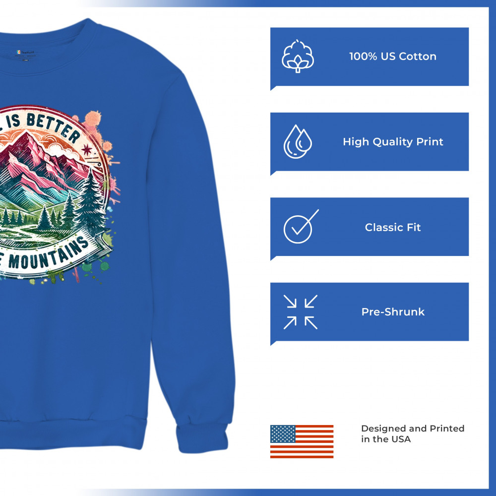 Life Is Better in the Mountains is designed for nature lovers, campers, and trail hikers who find peace in high altitudes. This colorful mountain scene captures wilderness vibes, camping escapes, and weekend hiking energy. Ideal for forest lovers, off-grid adventurers, and glamping fans alike.
