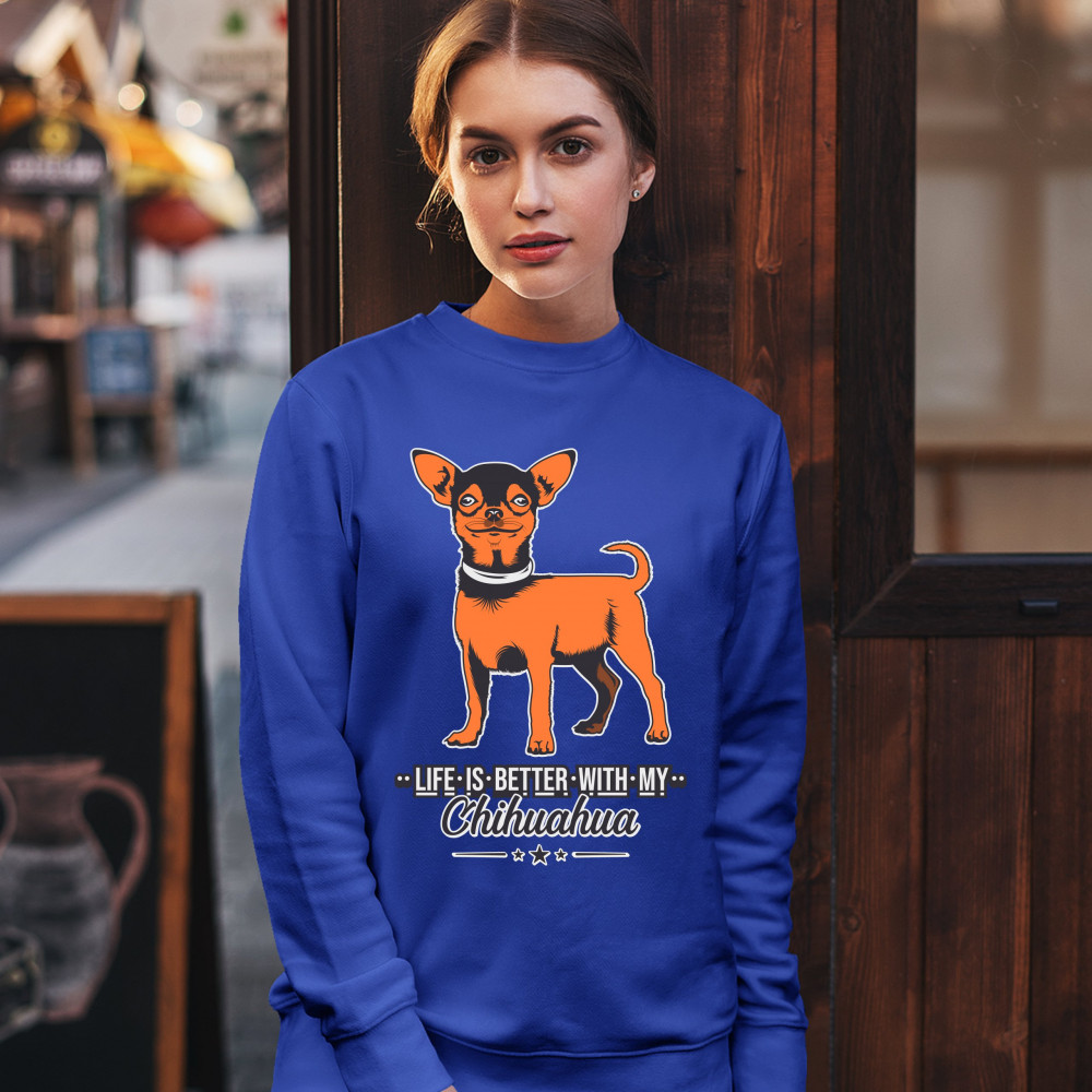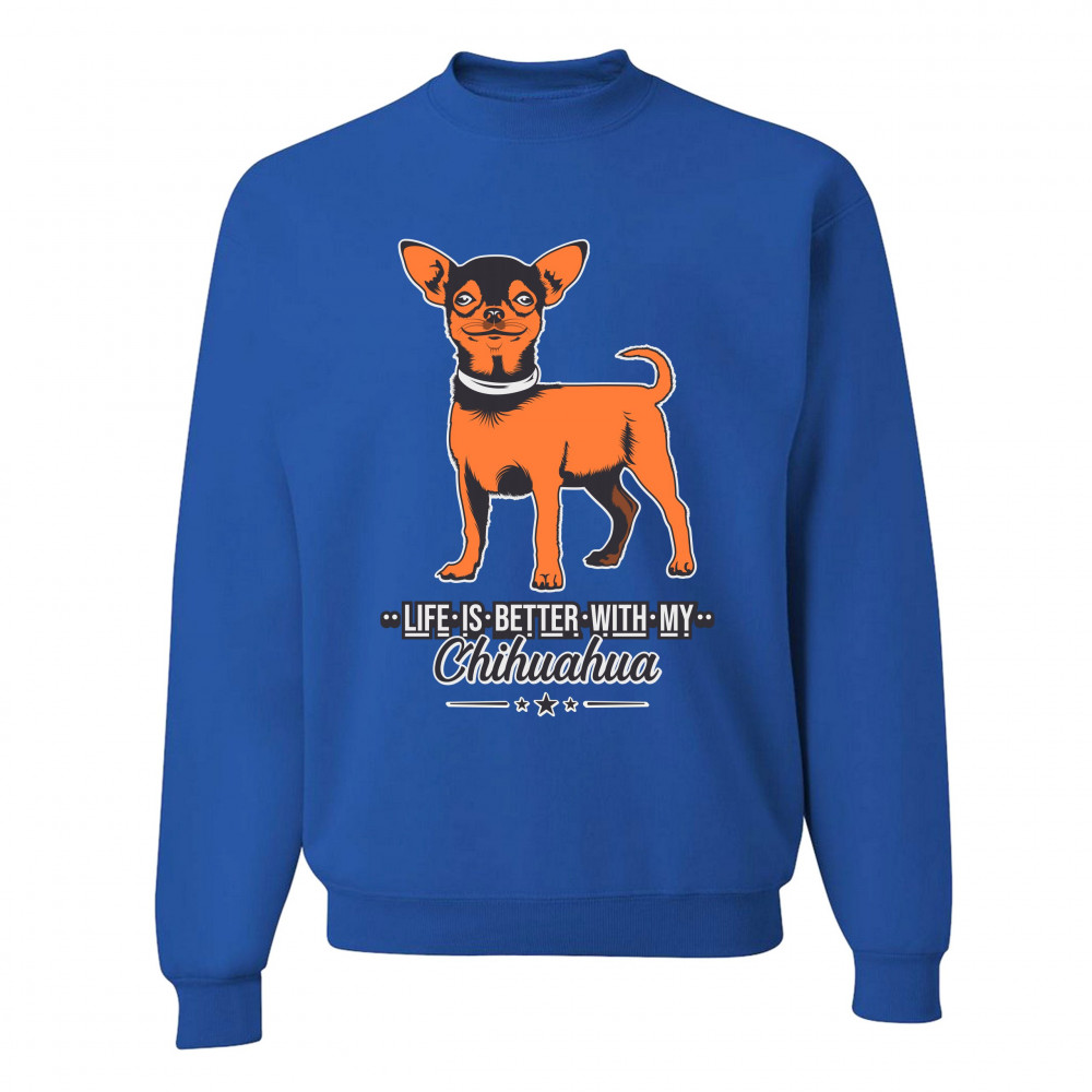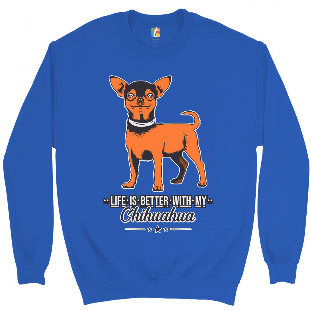 LIFE IS BETTER WITH MY CHIHUAHUA sweatshirt toy dog lover cute pet crewneck royal blue
