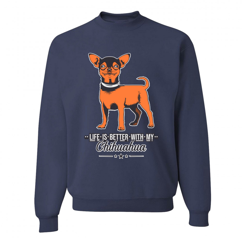 LIFE IS BETTER WITH MY CHIHUAHUA sweatshirt toy dog lover cute pet crewneck navy blue