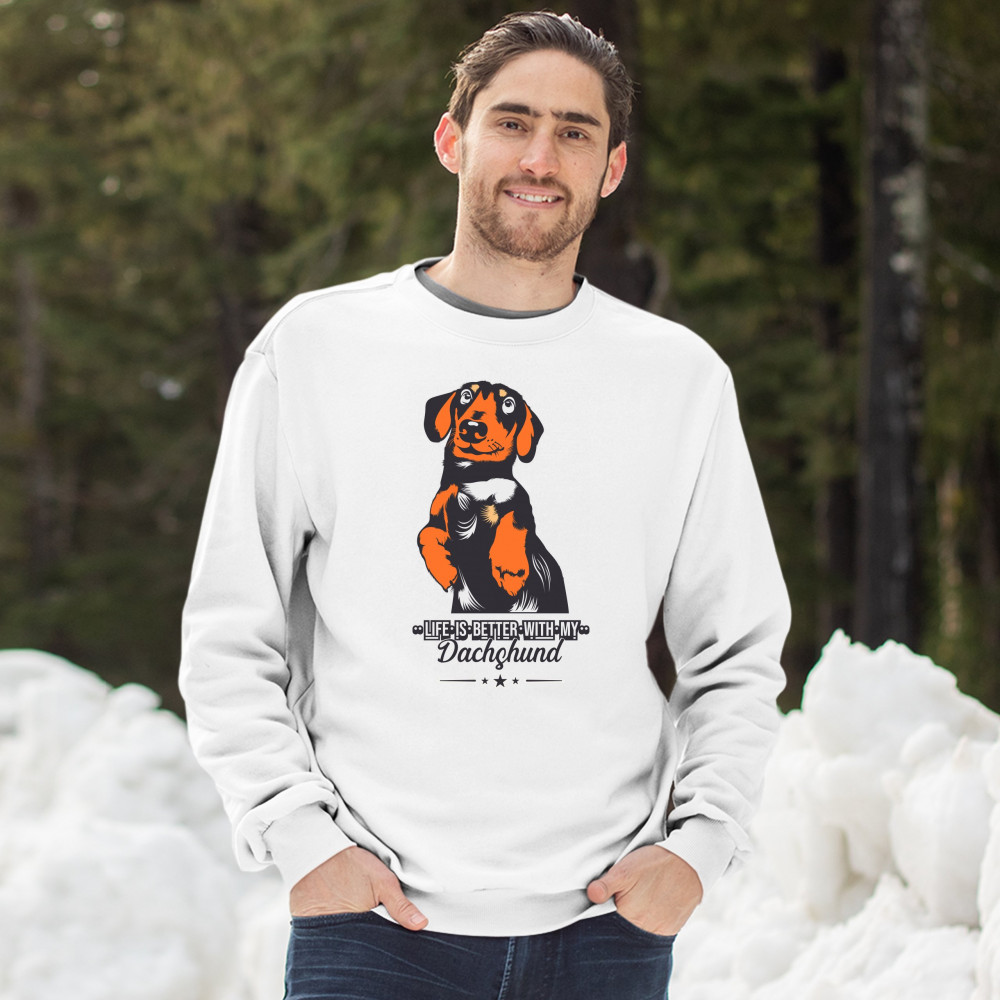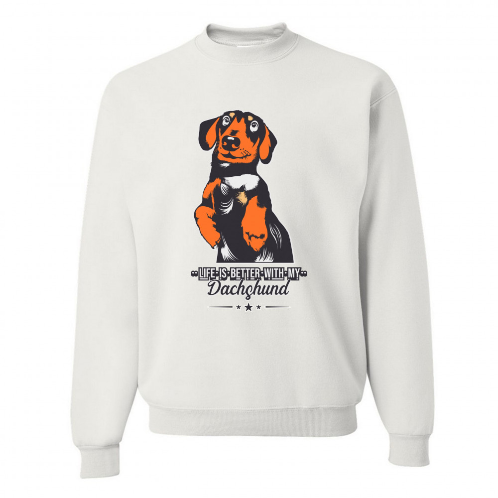 LIFE IS BETTER WITH MY DACHSUND sweatshirt pet lover i love my dog crewneck white