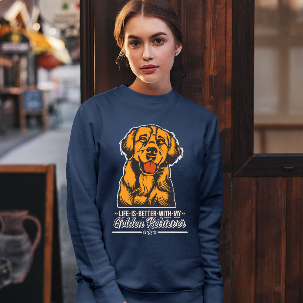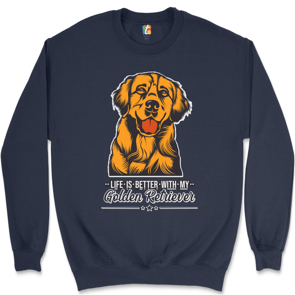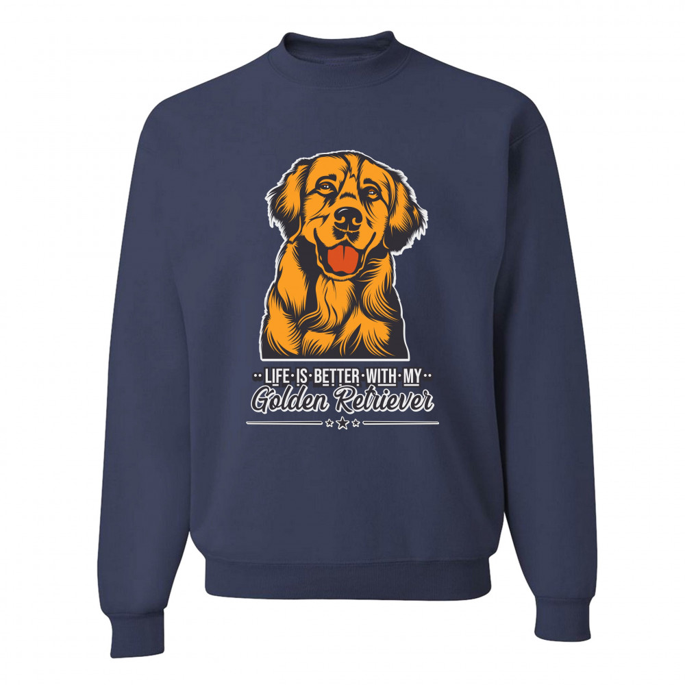 LIFE IS BETTER WITH MY GOLDEN RETRIEVER sweatshirt puppy dog owner crewneck navy blue
