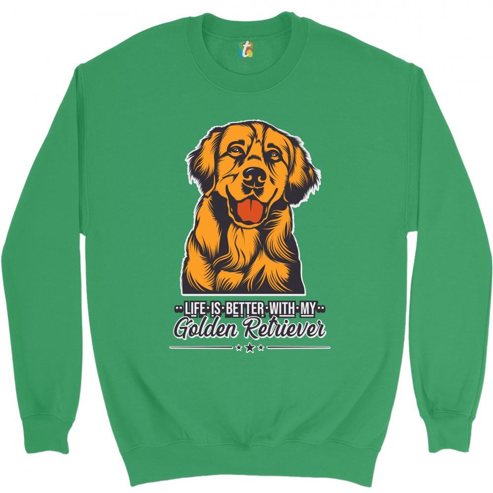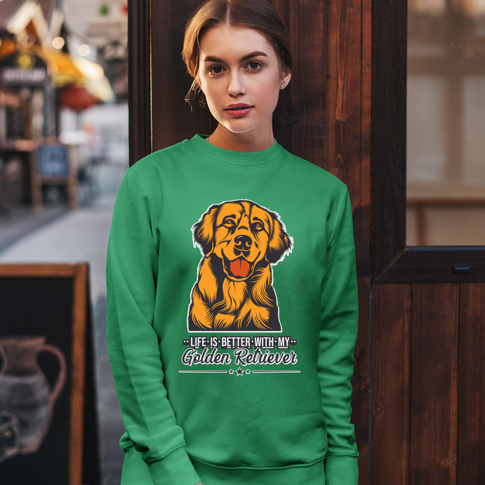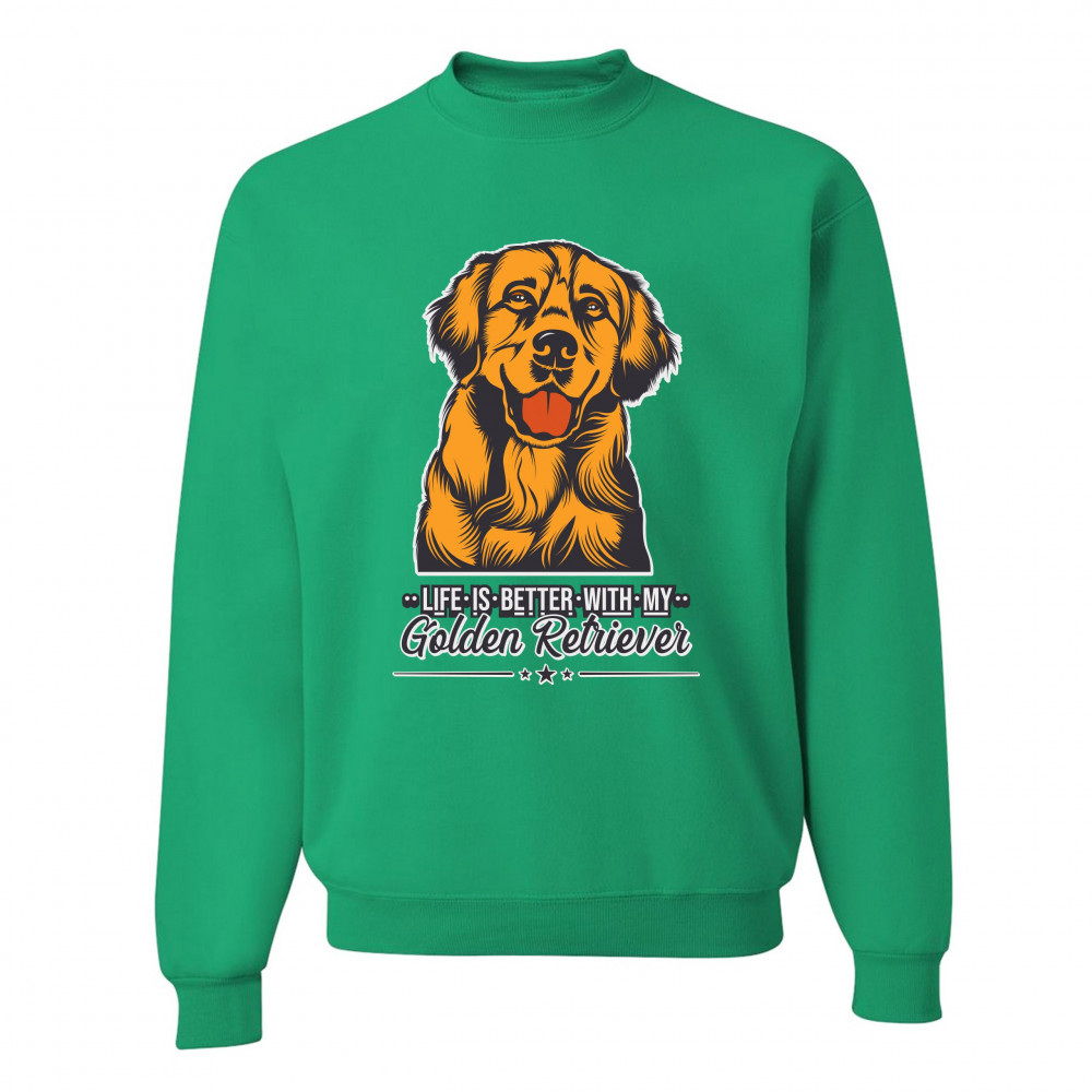 LIFE IS BETTER WITH MY GOLDEN RETRIEVER sweatshirt puppy dog owner crewneck green