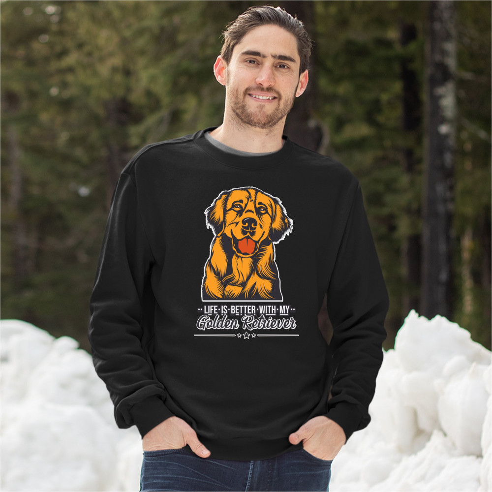 LIFE IS BETTER WITH MY GOLDEN RETRIEVER sweatshirt puppy dog owner crewneck black