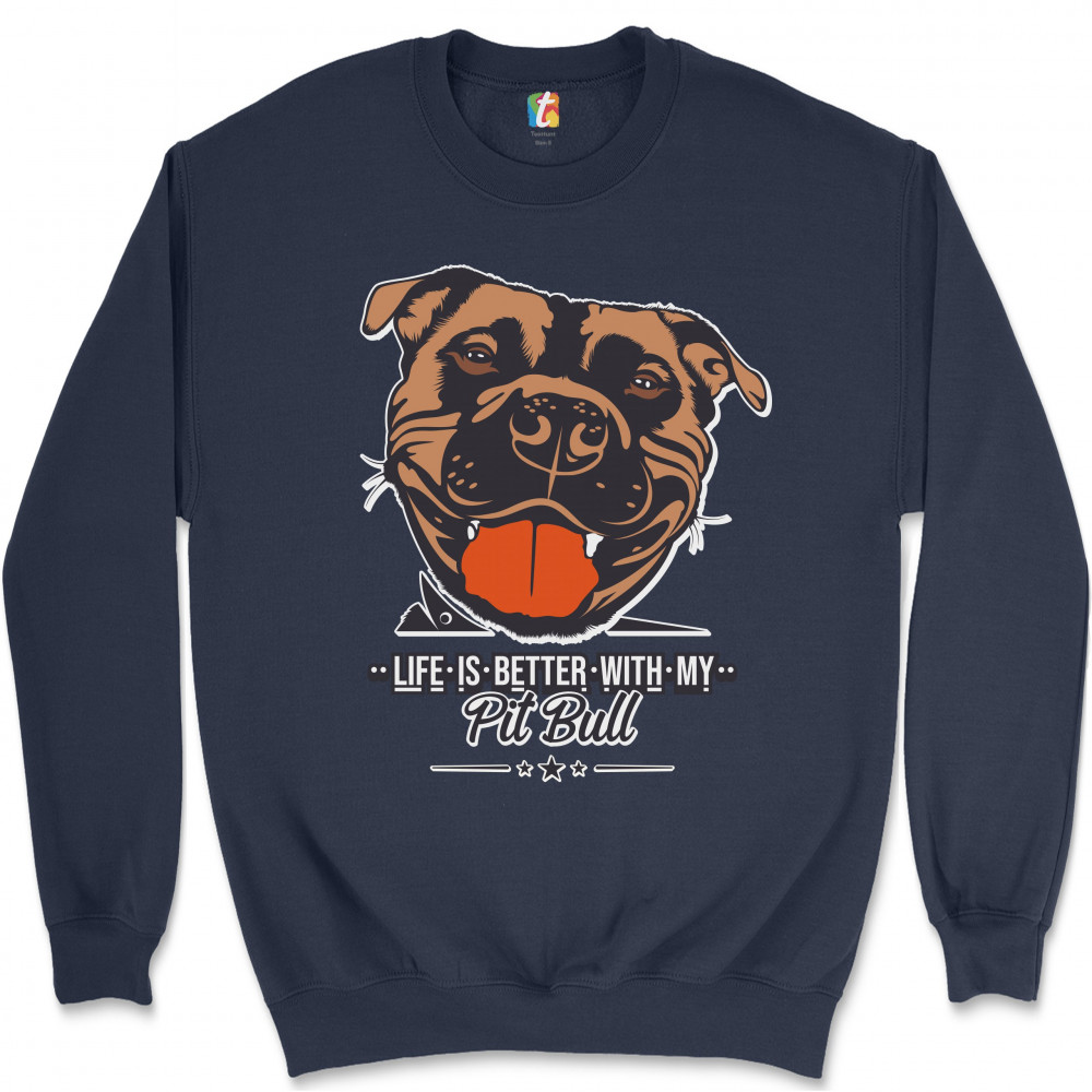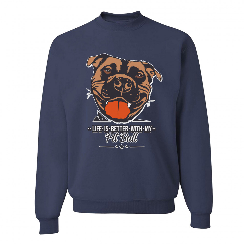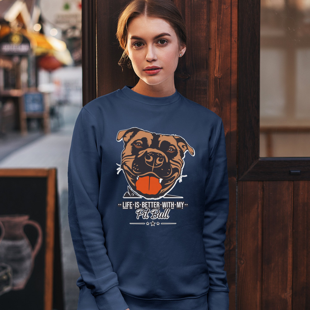 LIFE IS BETTER WITH MY PIT BULL sweatshirt i love me dog animal lover crewneck navy blue