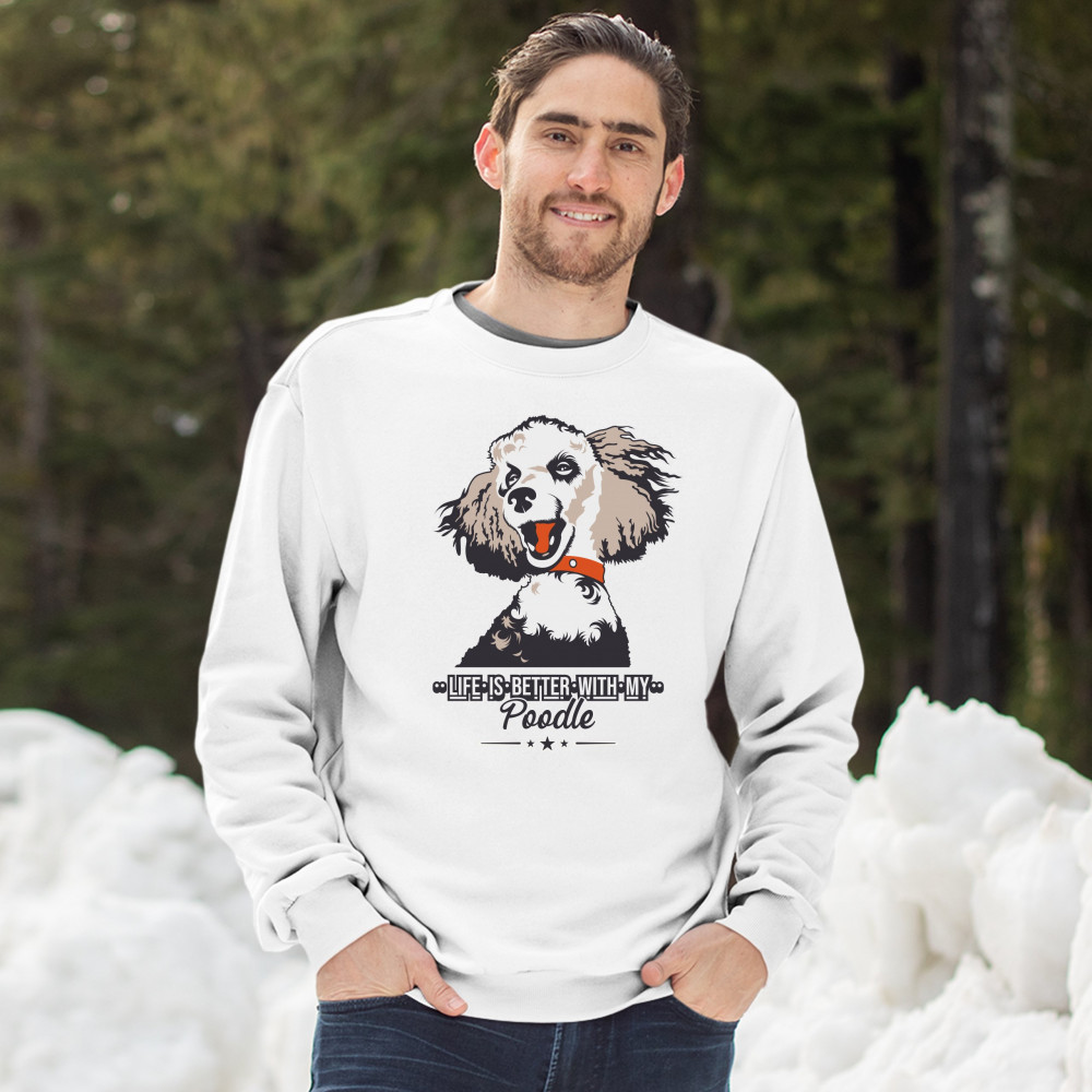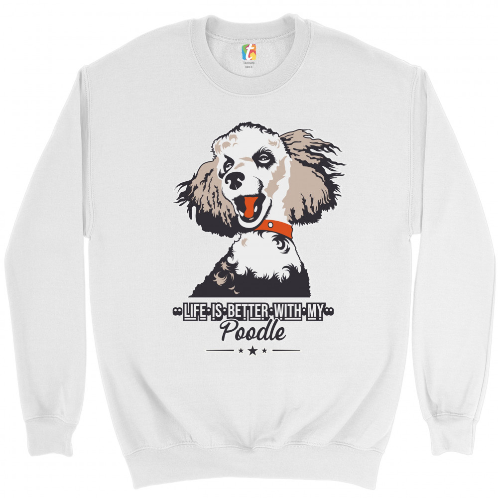 LIFE IS BETTER WITH MY POODLE sweatshirt cute puppy dog lover pet crewneck white