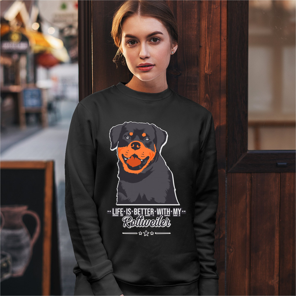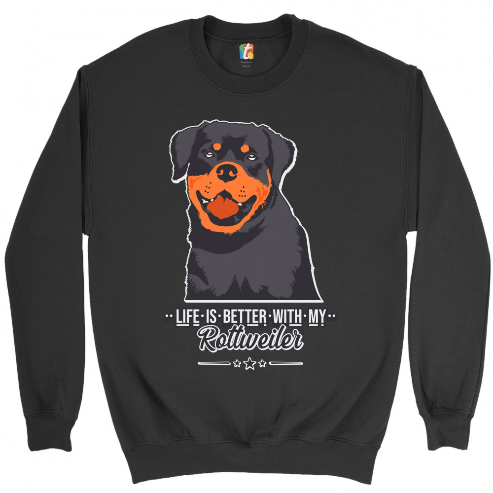 LIFE IS BETTER WITH MY ROTTWEILER sweatshirt rottie pet dog lover crewneck black