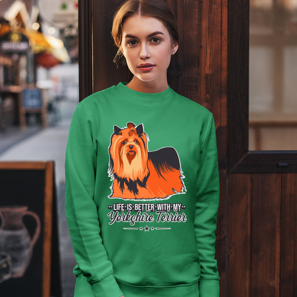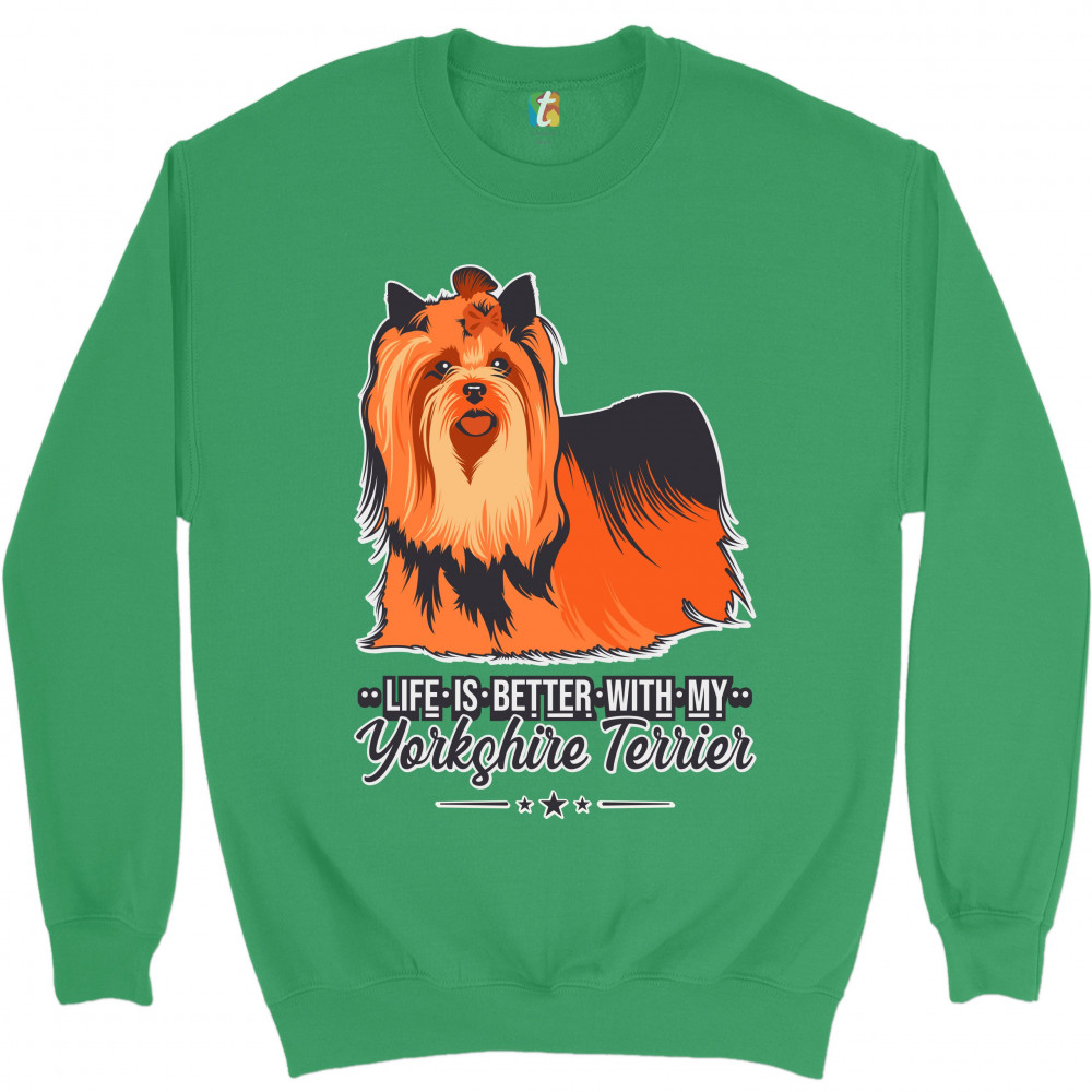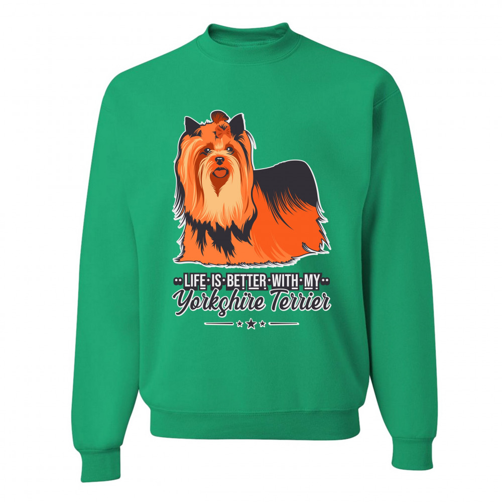 LIFE IS BETTER WITH MY YORKSHIRE TERRIER sweatshirt yorkie toy dog crewneck green