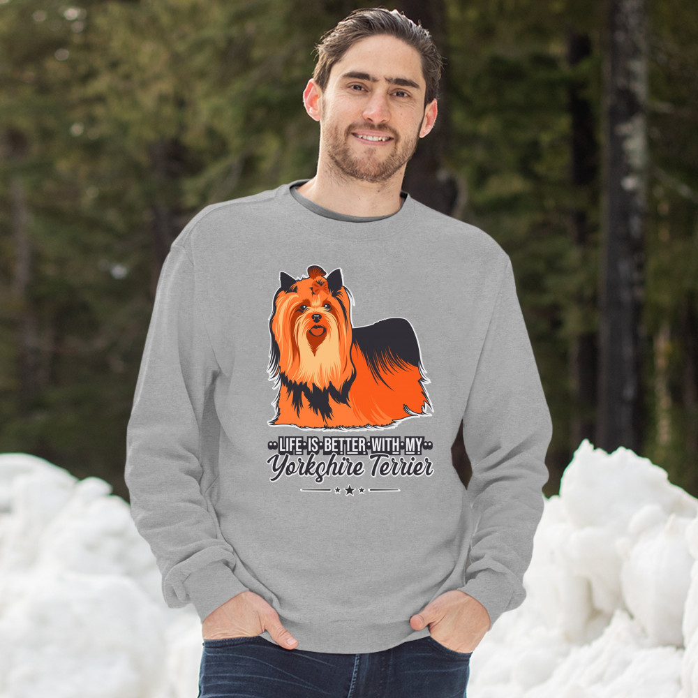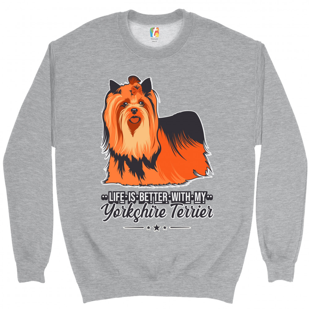 LIFE IS BETTER WITH MY YORKSHIRE TERRIER sweatshirt yorkie toy dog crewneck gray