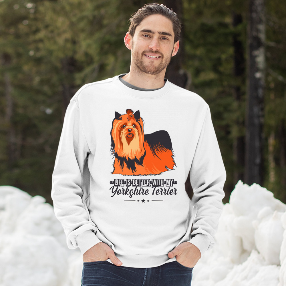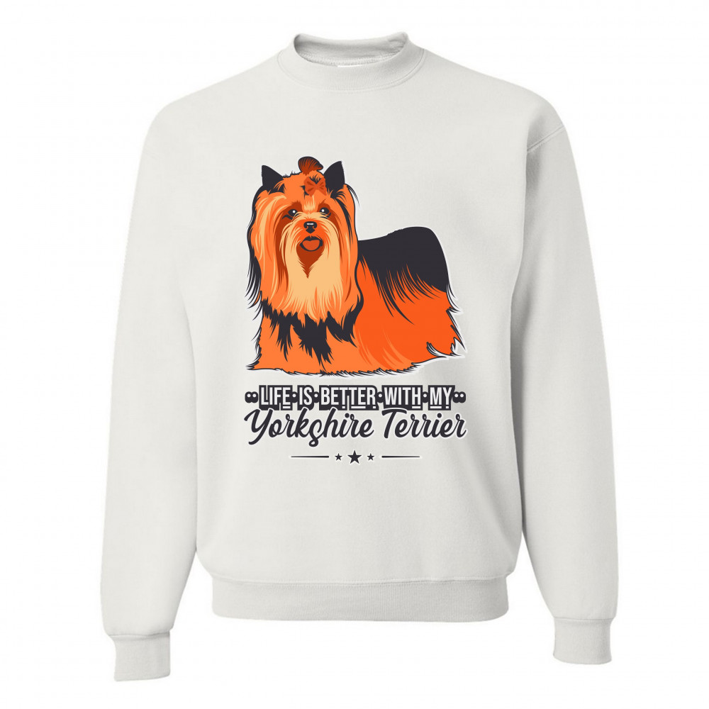 LIFE IS BETTER WITH MY YORKSHIRE TERRIER sweatshirt yorkie toy dog crewneck white