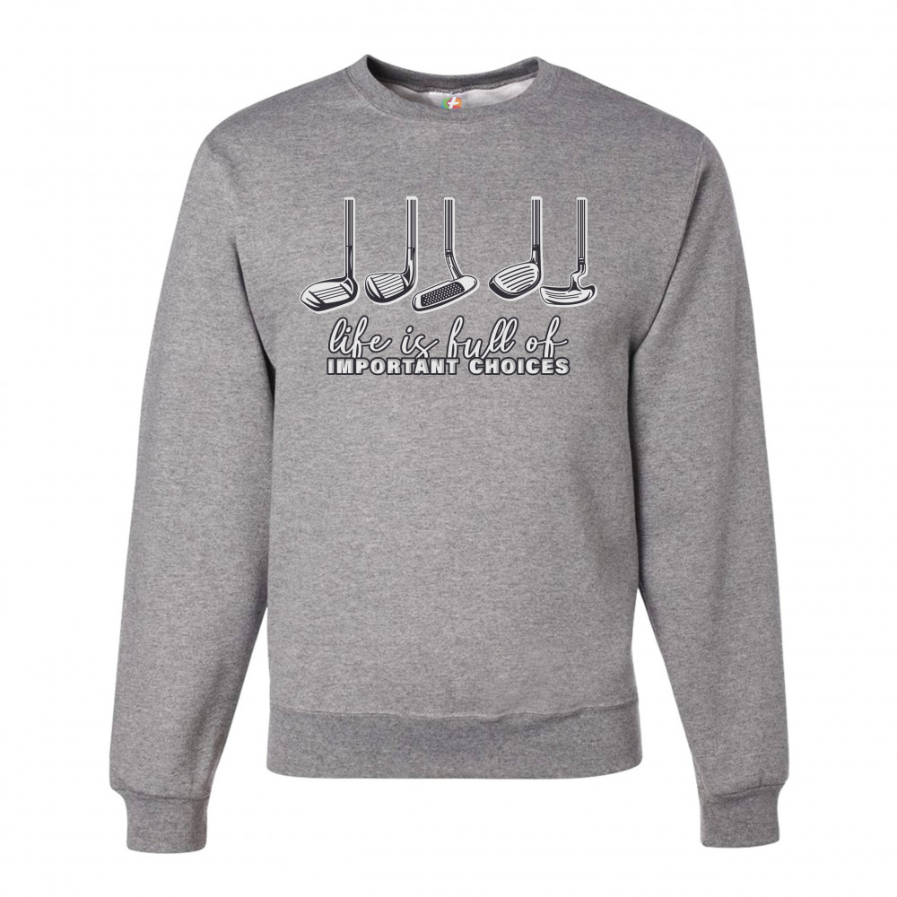 LIFE IS FULL OF IMPORTANT CHOICES sweatshirt funny golf clubs golfing crewneck gray