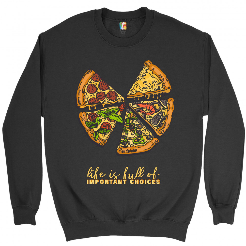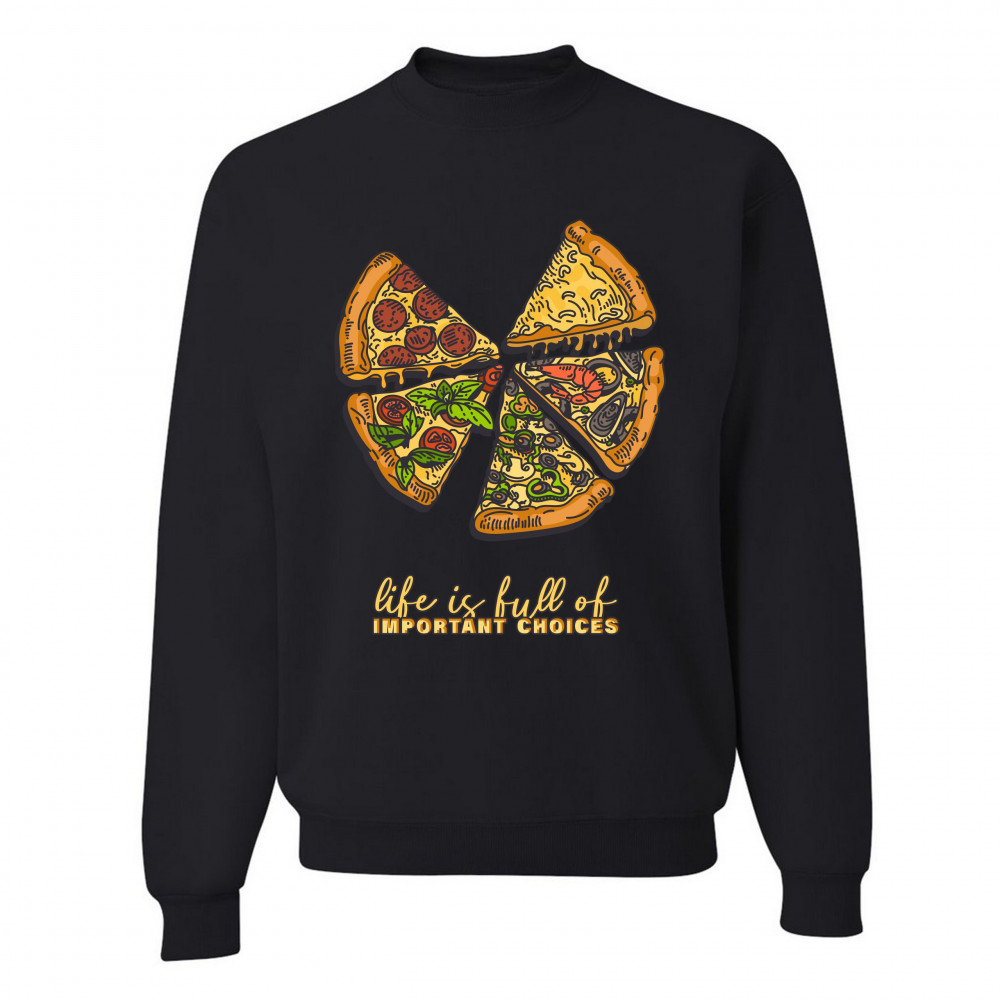 LIFE IS FULL OF IMPORTANT CHOICES sweatshirt funny pepperoni pizza crewneck black