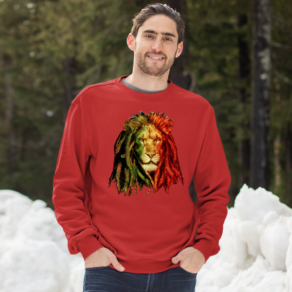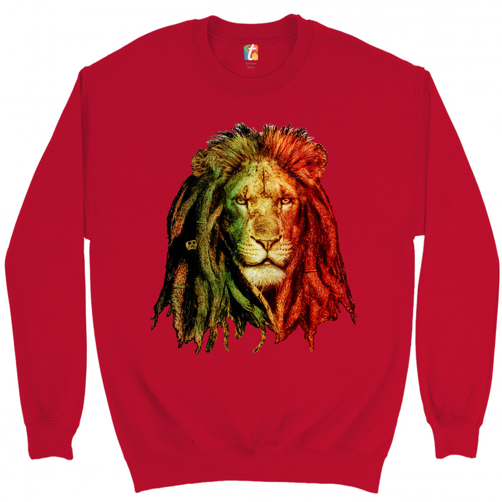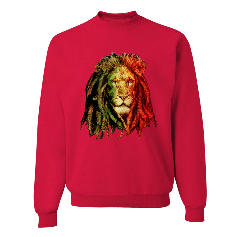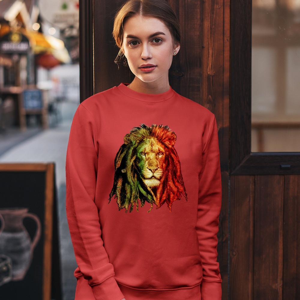 LION WITH DREADLOCKS sweatshirt rastafari jah jamaica marijuana 420 crewneck red