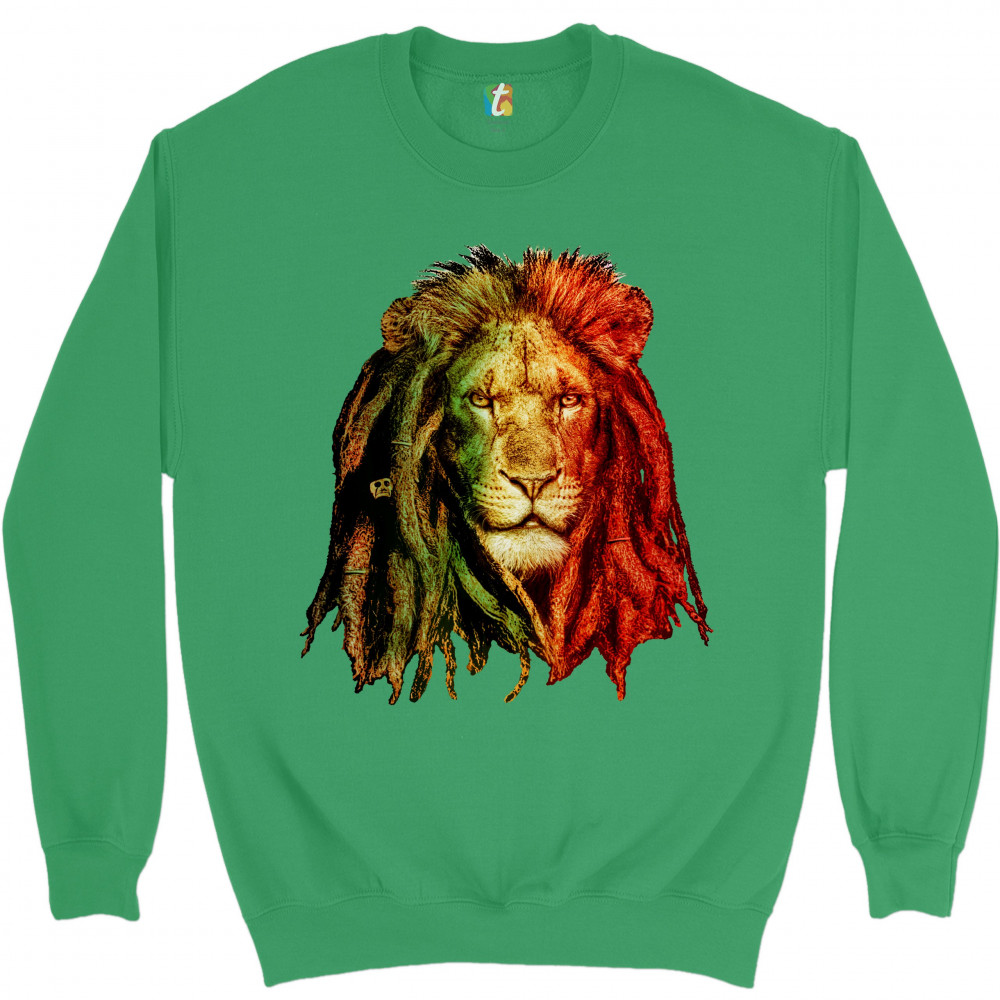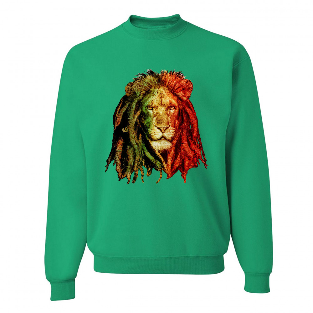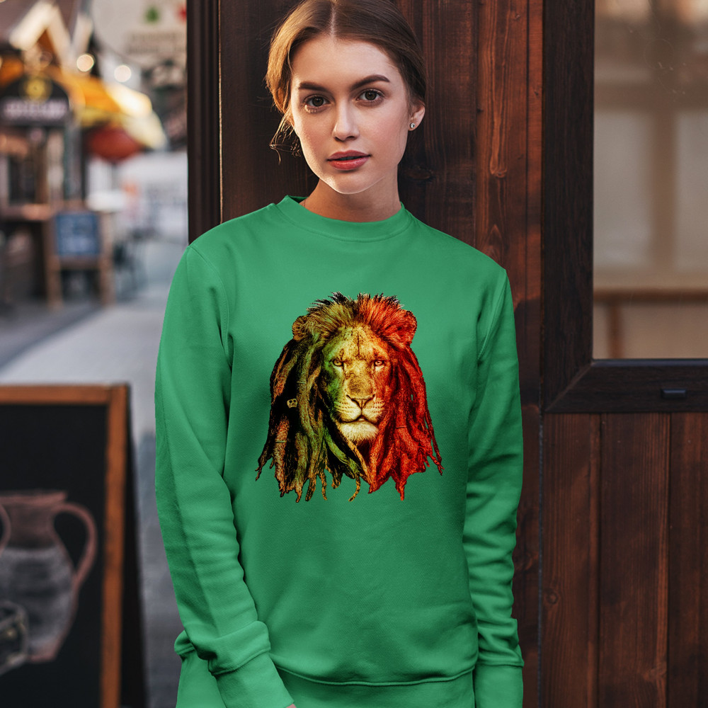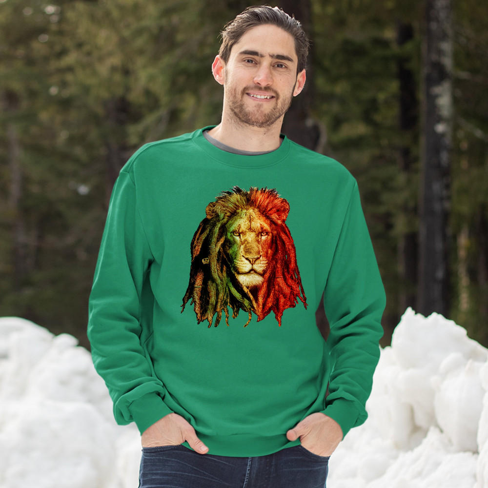 LION WITH DREADLOCKS sweatshirt rastafari jah jamaica marijuana 420 crewneck green