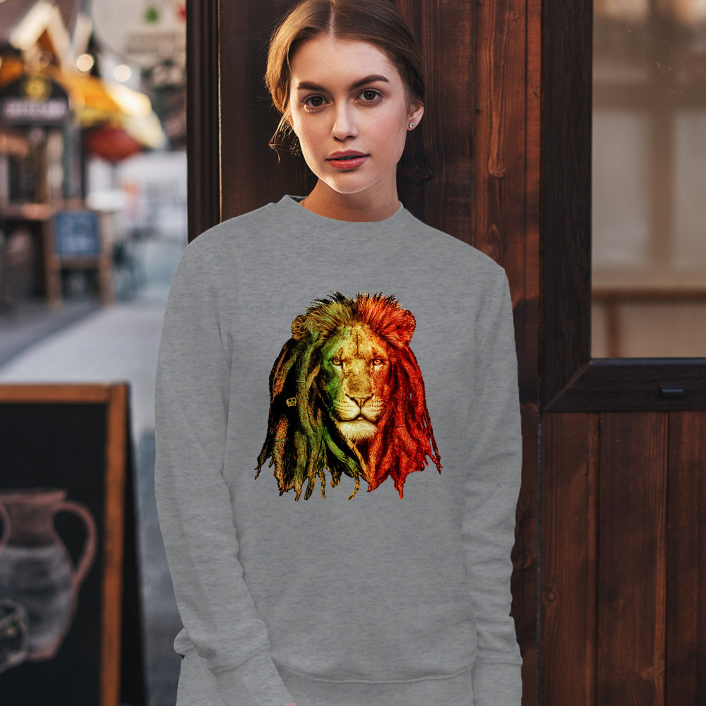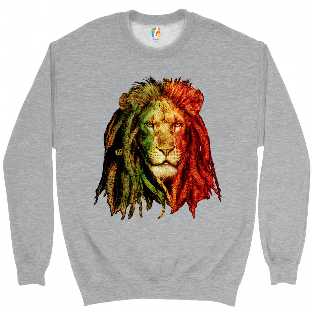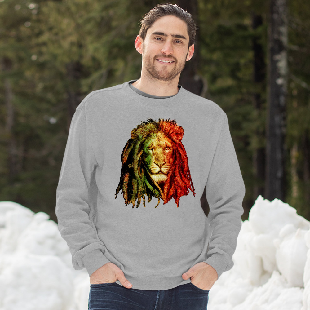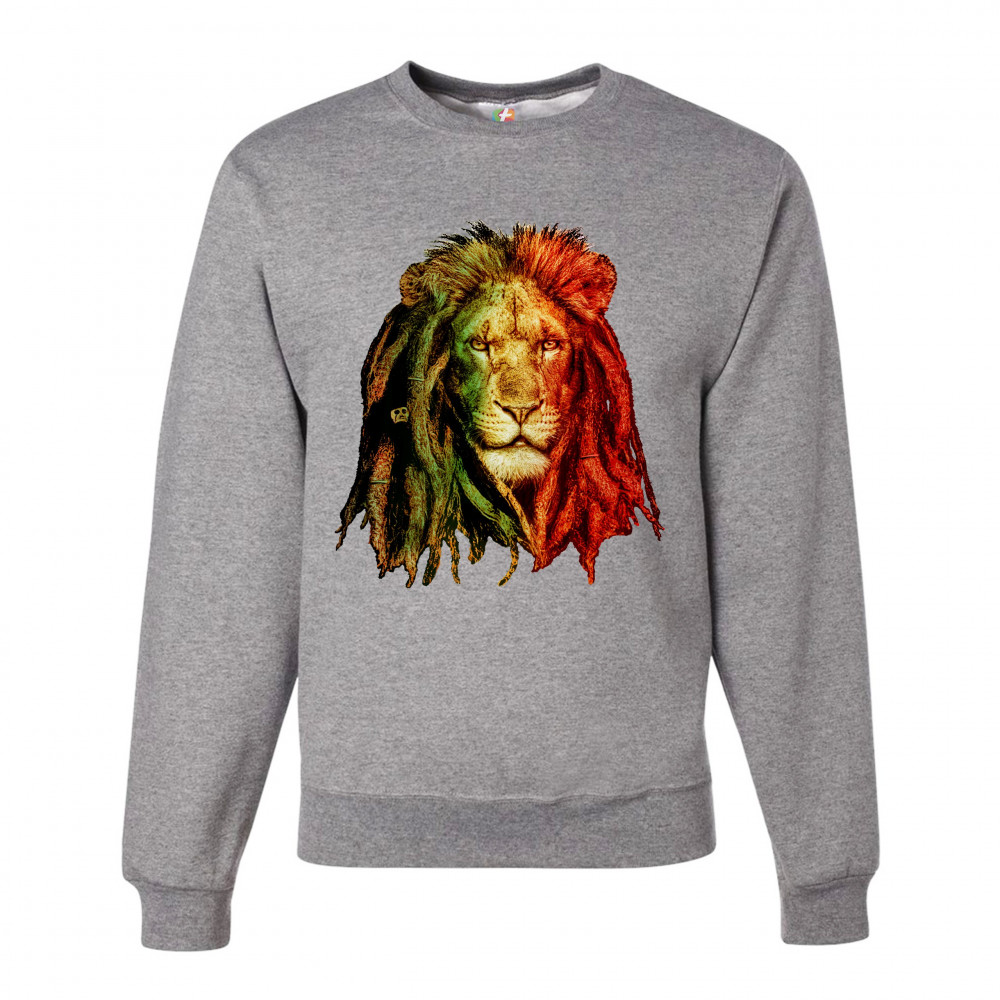 LION WITH DREADLOCKS sweatshirt rastafari jah jamaica marijuana 420 crewneck gray