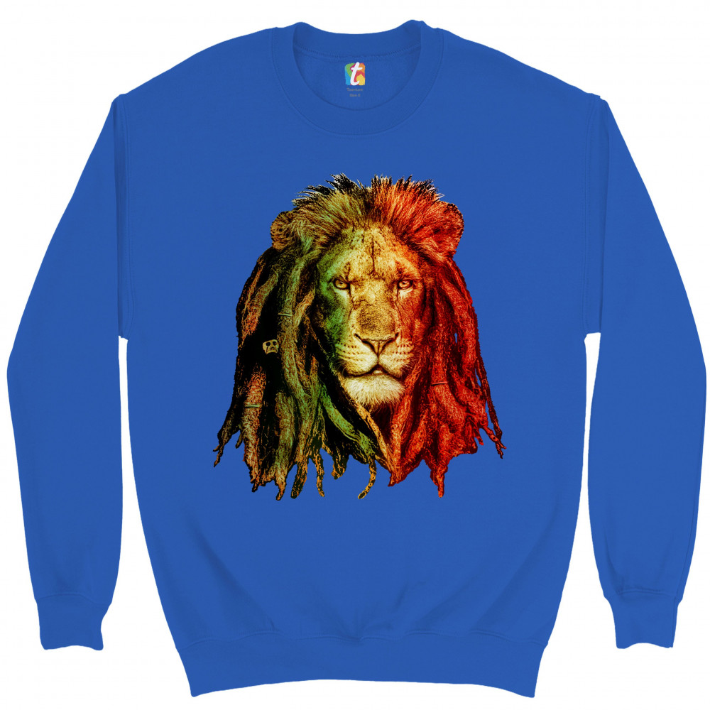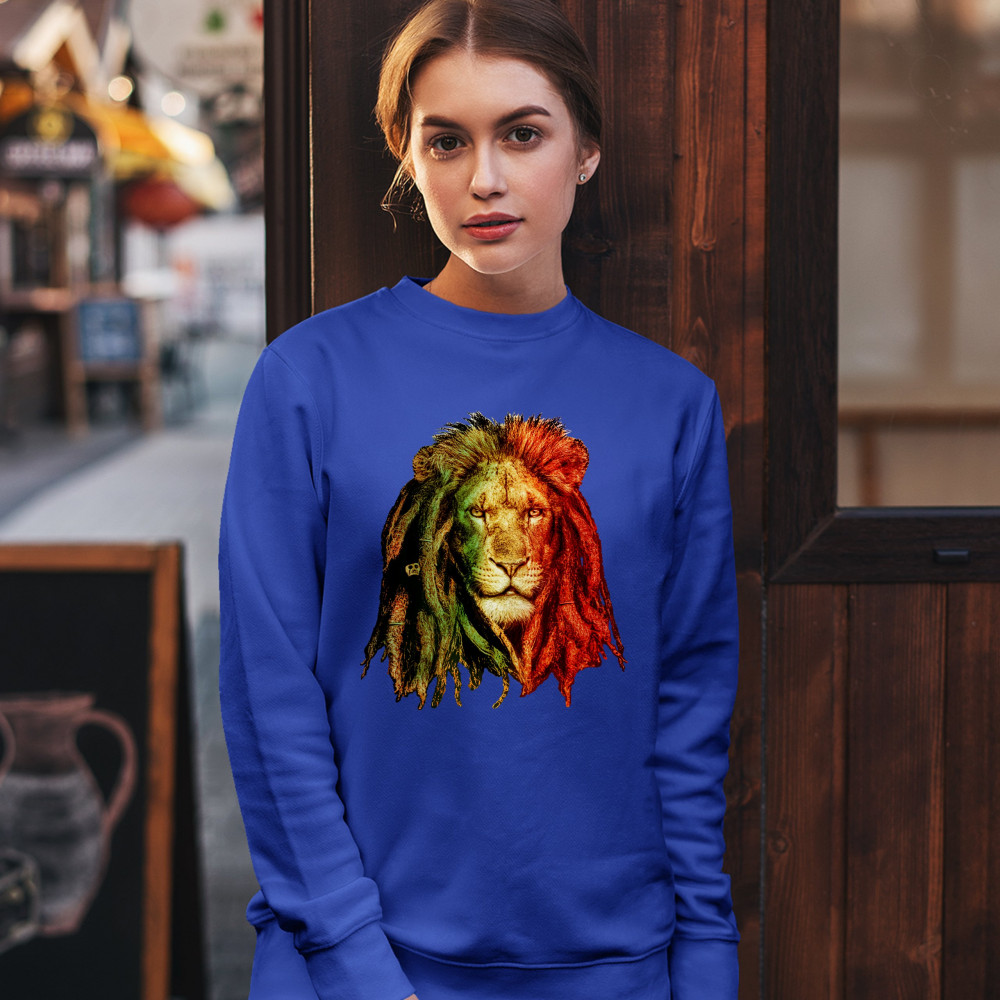 LION WITH DREADLOCKS sweatshirt rastafari jah jamaica marijuana 420 crewneck royal blue