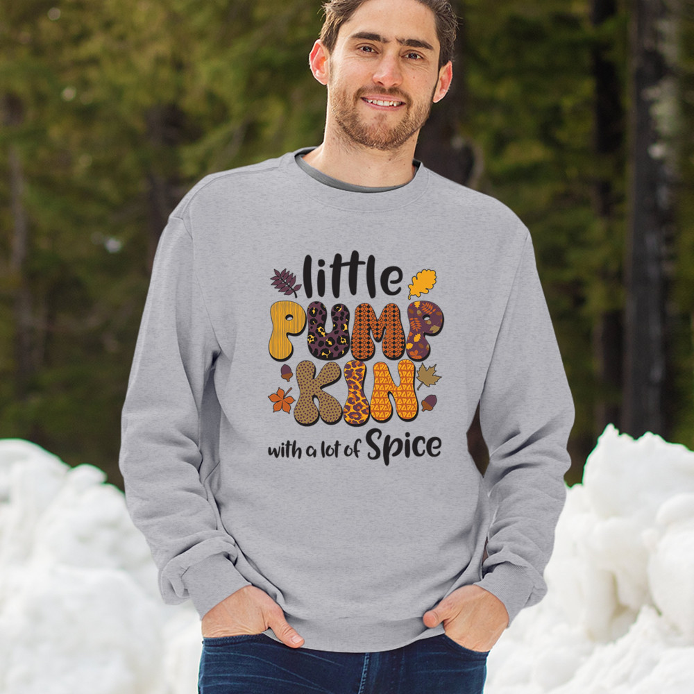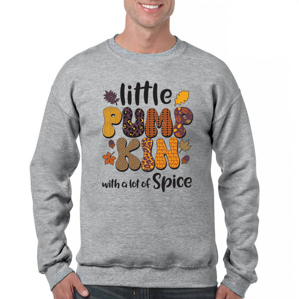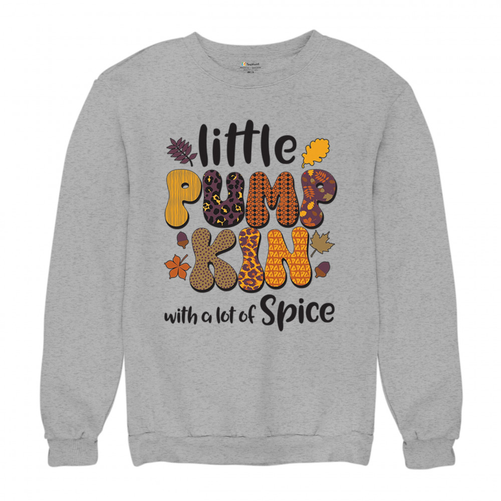 LITTLE PUMPKIN WITH A LOT OF SPICE sweatshirt cute fall thanksgiving crewneck gray