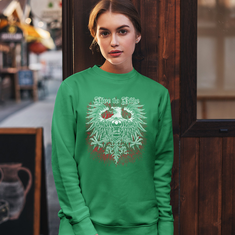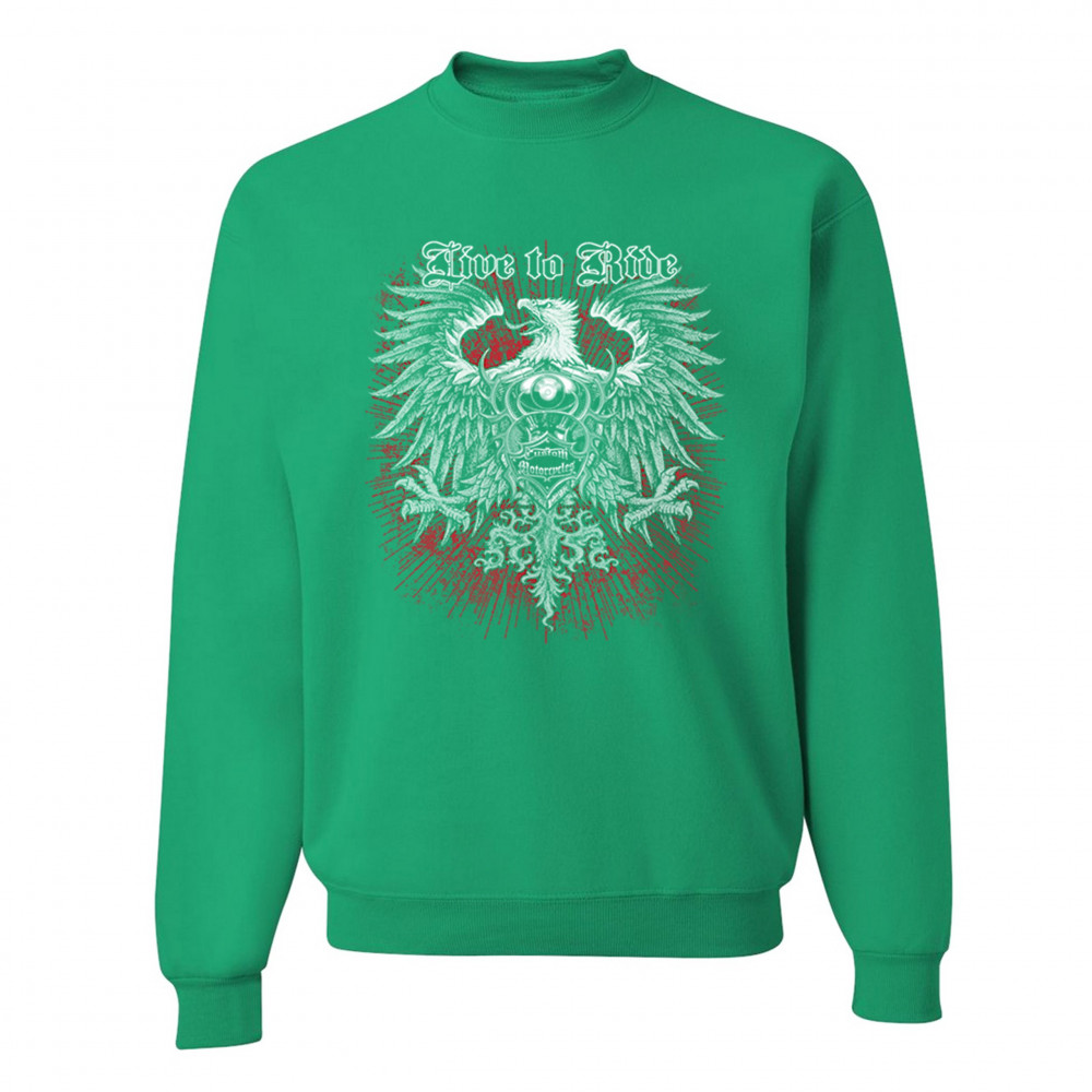 LIVE TO RIDE sweatshirt custom motorcycles mc biker gang rider eagle crewneck green
