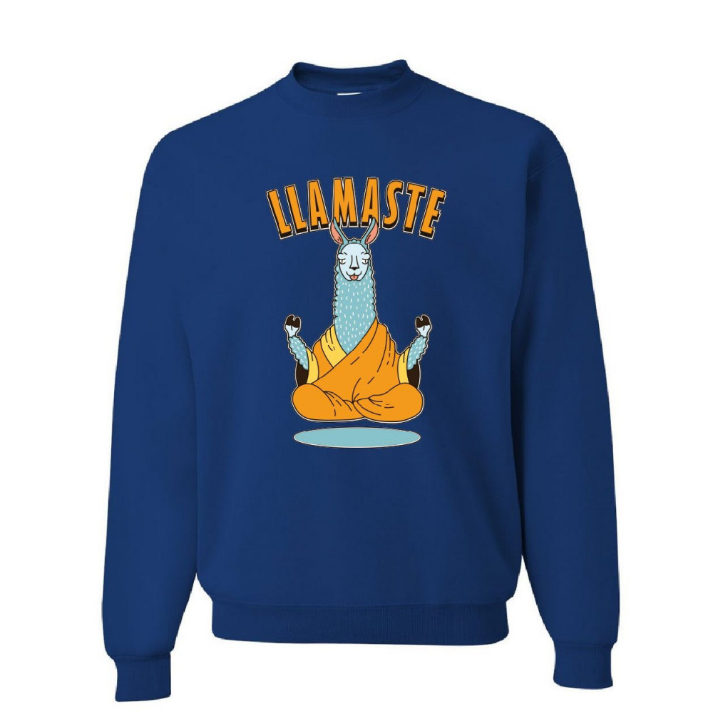 LLAMASTE sweatshirt funny yoga namaste llama peace pilates lotus om sweater blue