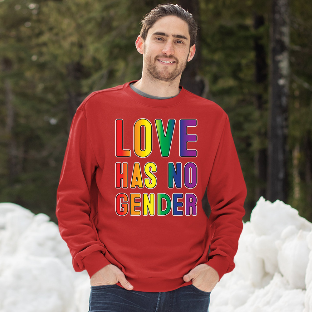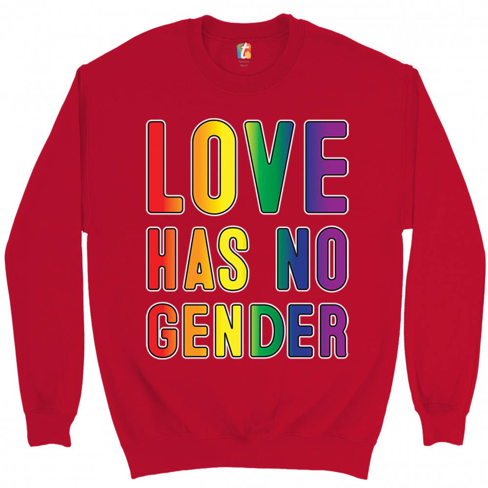 LOVE HAS NO GENDER sweatshirt lesbian gay bi transgender queer ally crewneck red