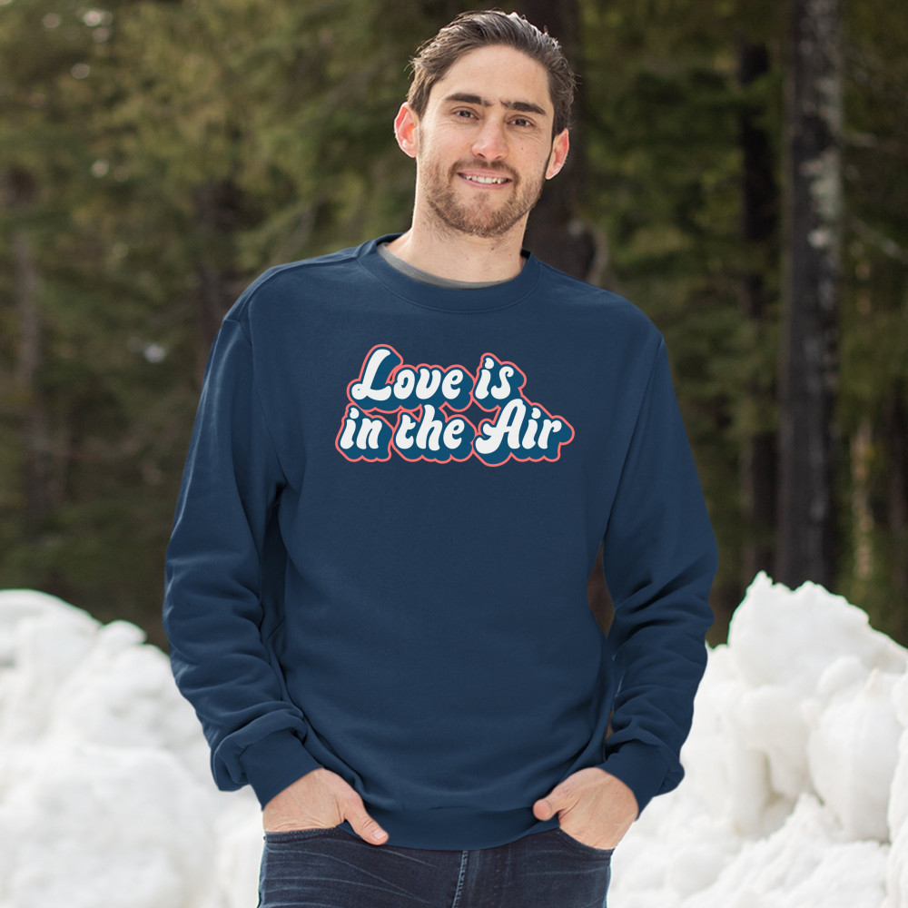 LOVE IS IN THE AIR sweatshirt happy valentine's day romance good vibes crewneck navy blue