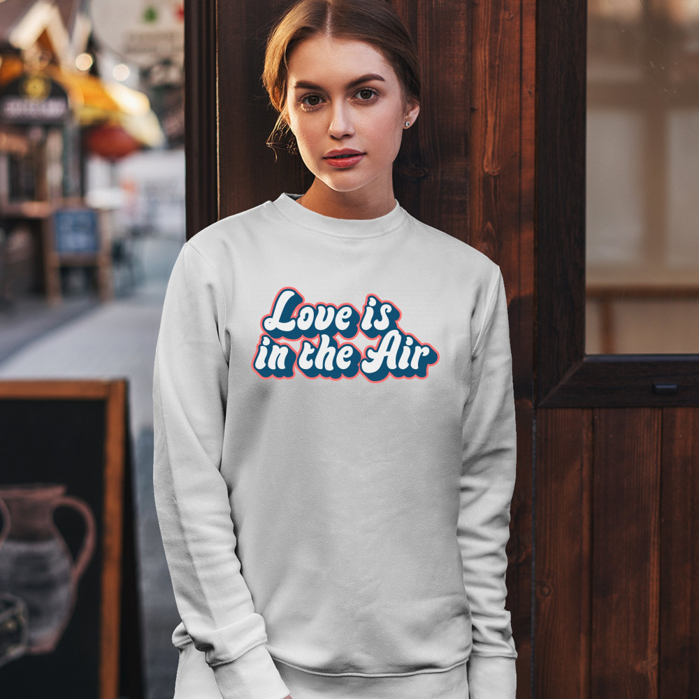 LOVE IS IN THE AIR sweatshirt happy valentine's day romance good vibes crewneck white
