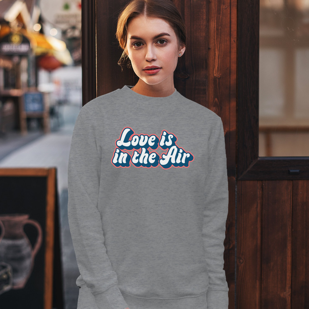 LOVE IS IN THE AIR sweatshirt happy valentine's day romance good vibes crewneck gray