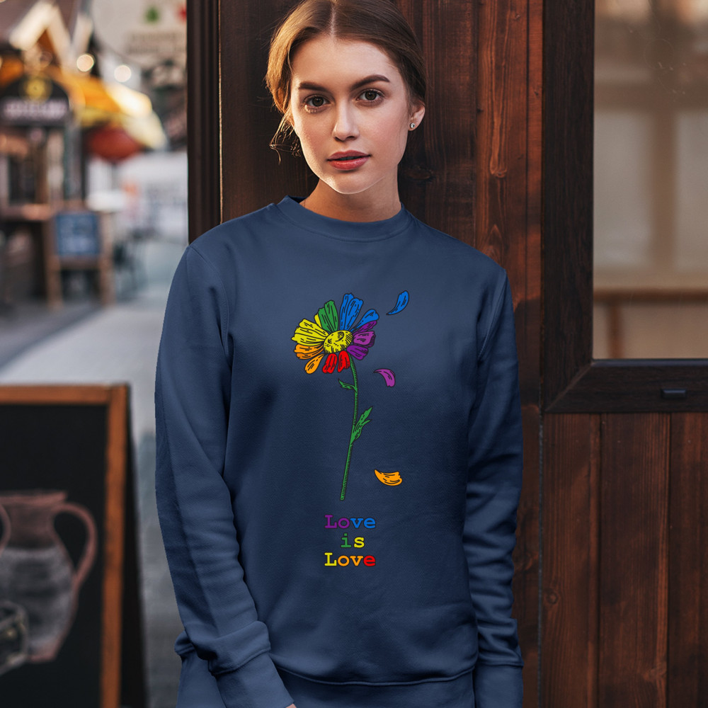 LOVE IS LOVE sweatshirt rainbow flower lgbt acceptance gay pride crewneck navy blue
