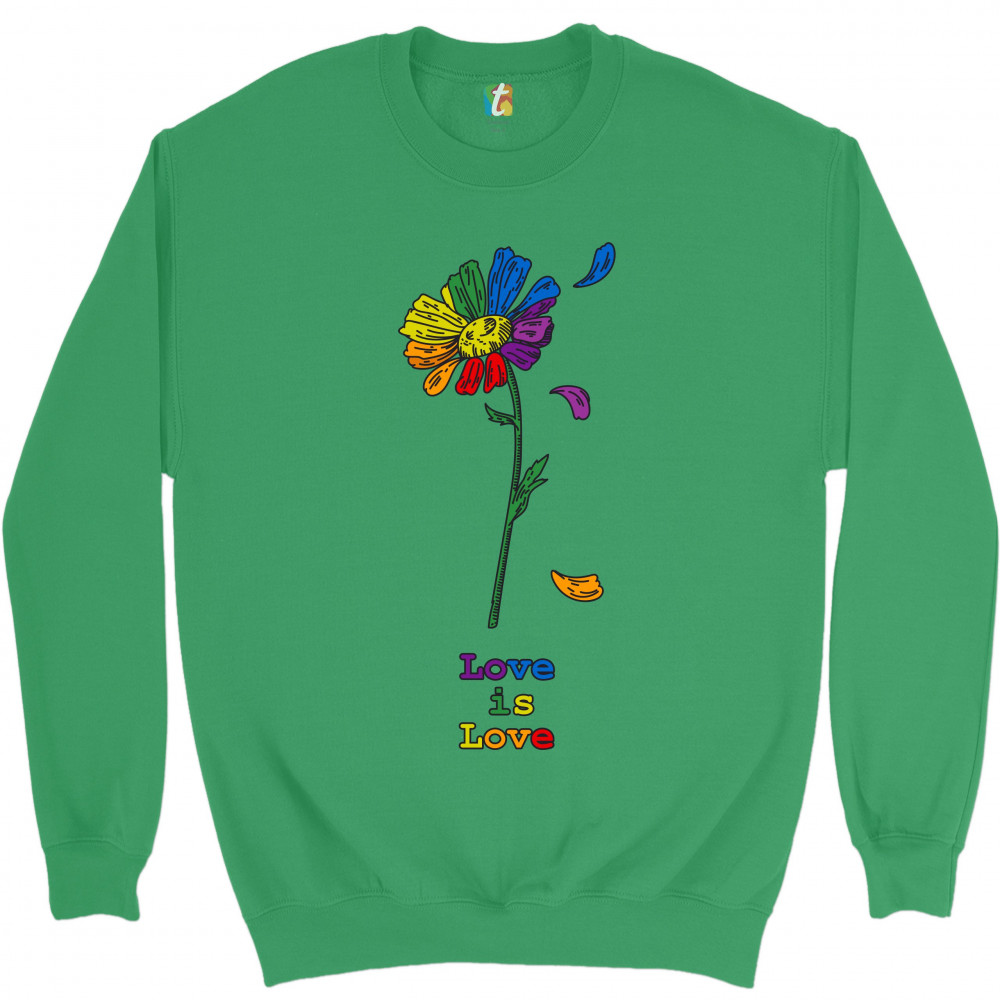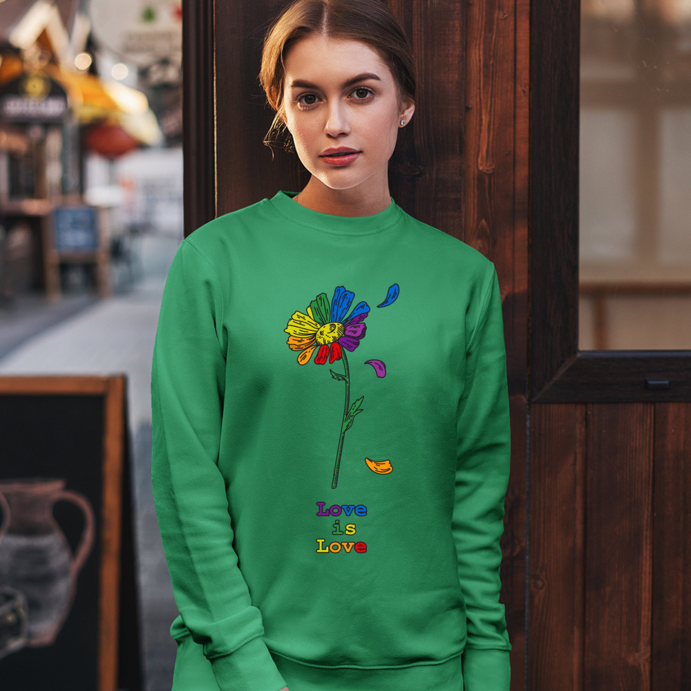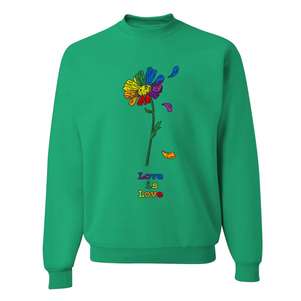 LOVE IS LOVE sweatshirt rainbow flower lgbt acceptance gay pride crewneck green
