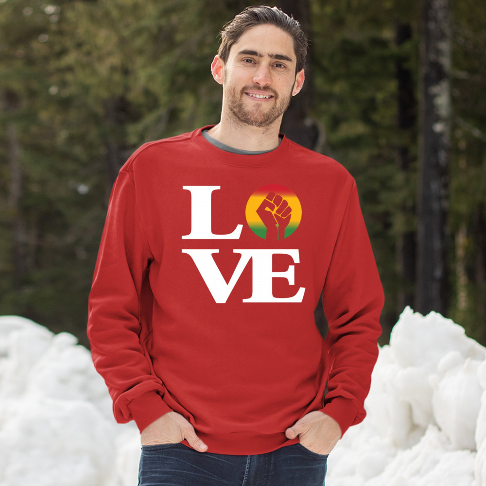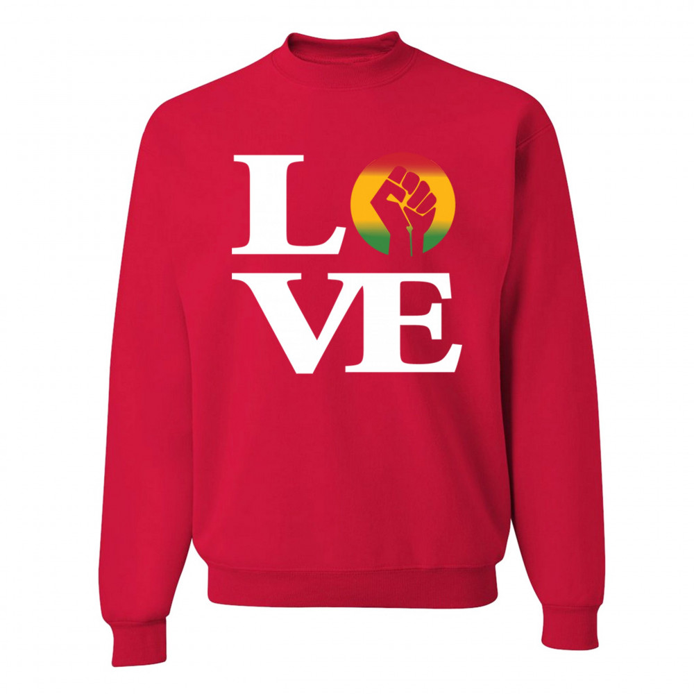 LOVE POWER FIST sweatshirt black lives matter african american crewneck red