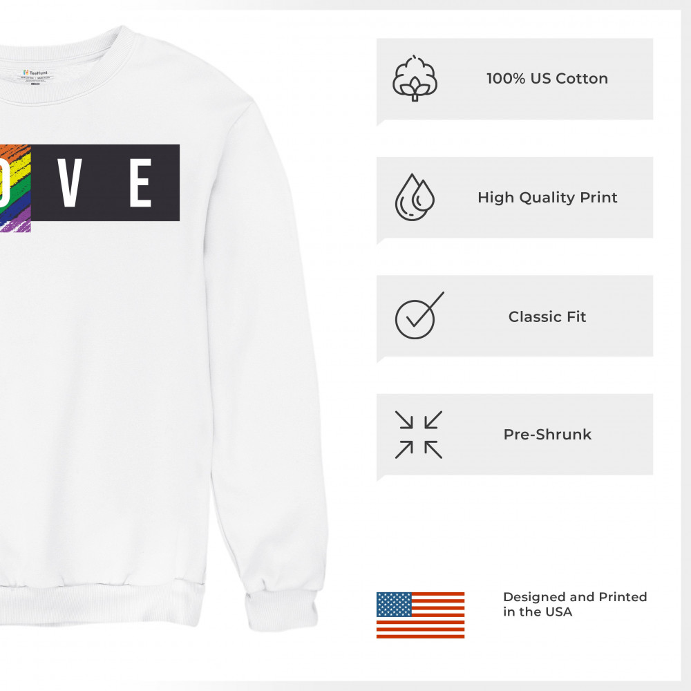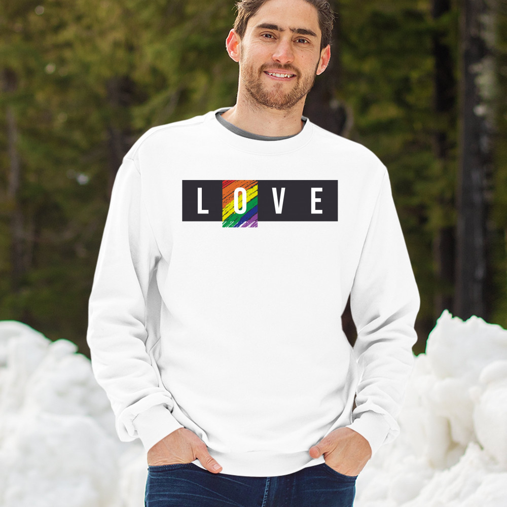 LOVE sweatshirt gay pride rainbow lgbtq tolerance equality crewneck white