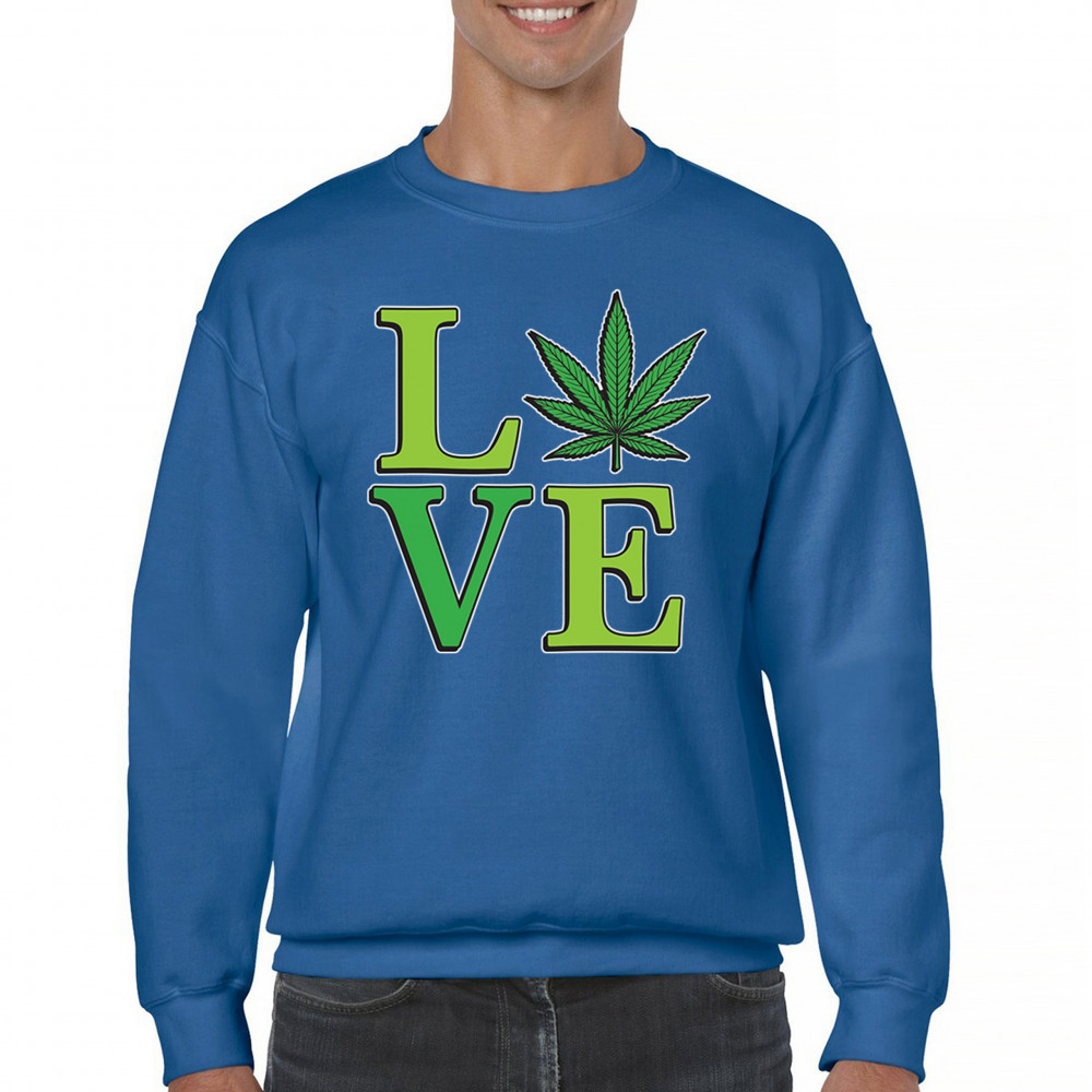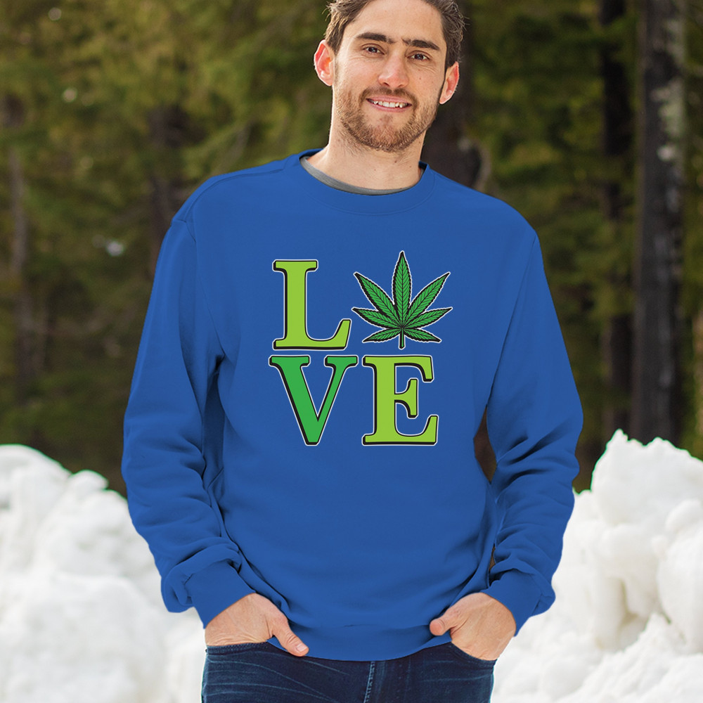LOVE design with a bold weed leaf. Perfect for 420 fans, stoners, cannabis lifestyle wear, green pride, and marijuana lovers.