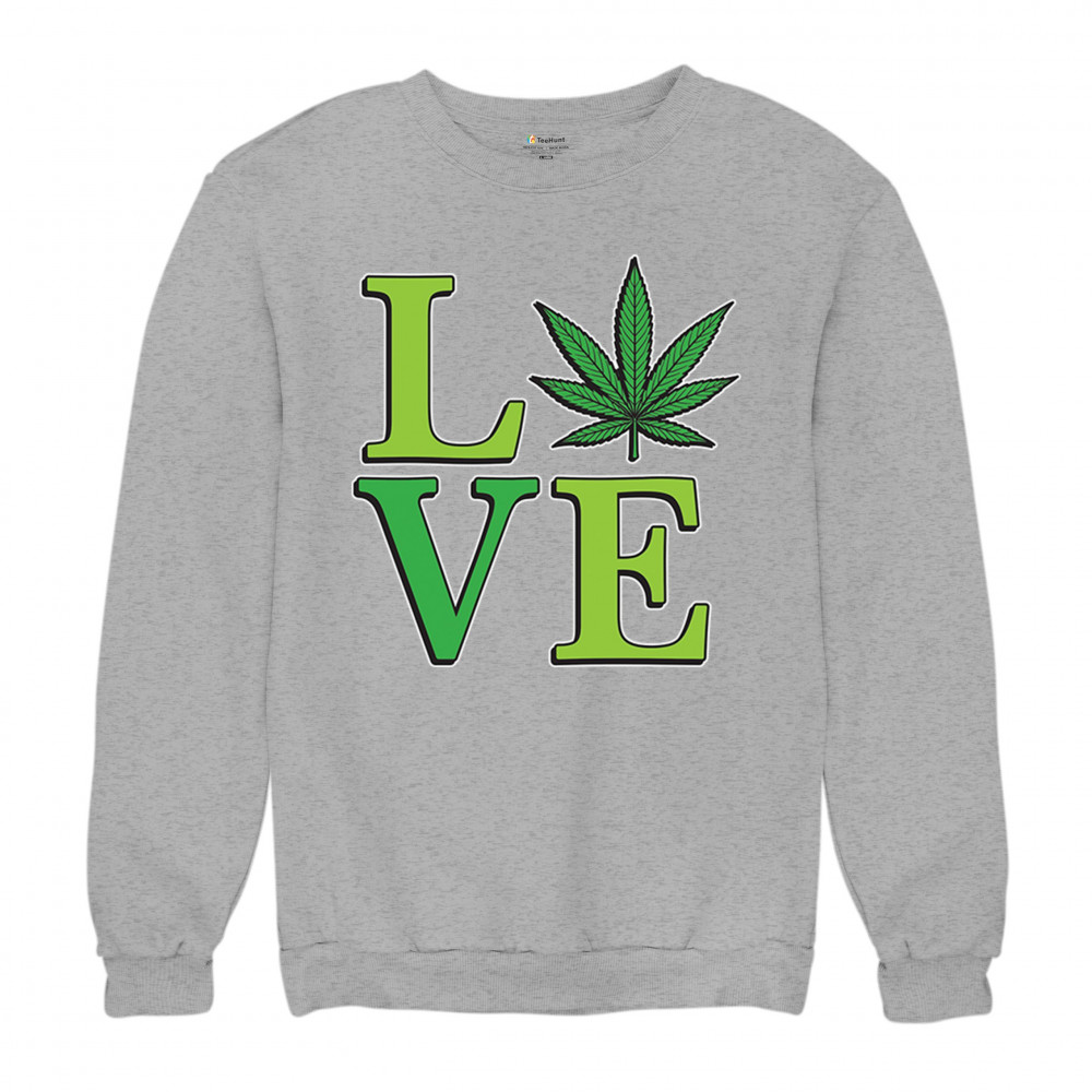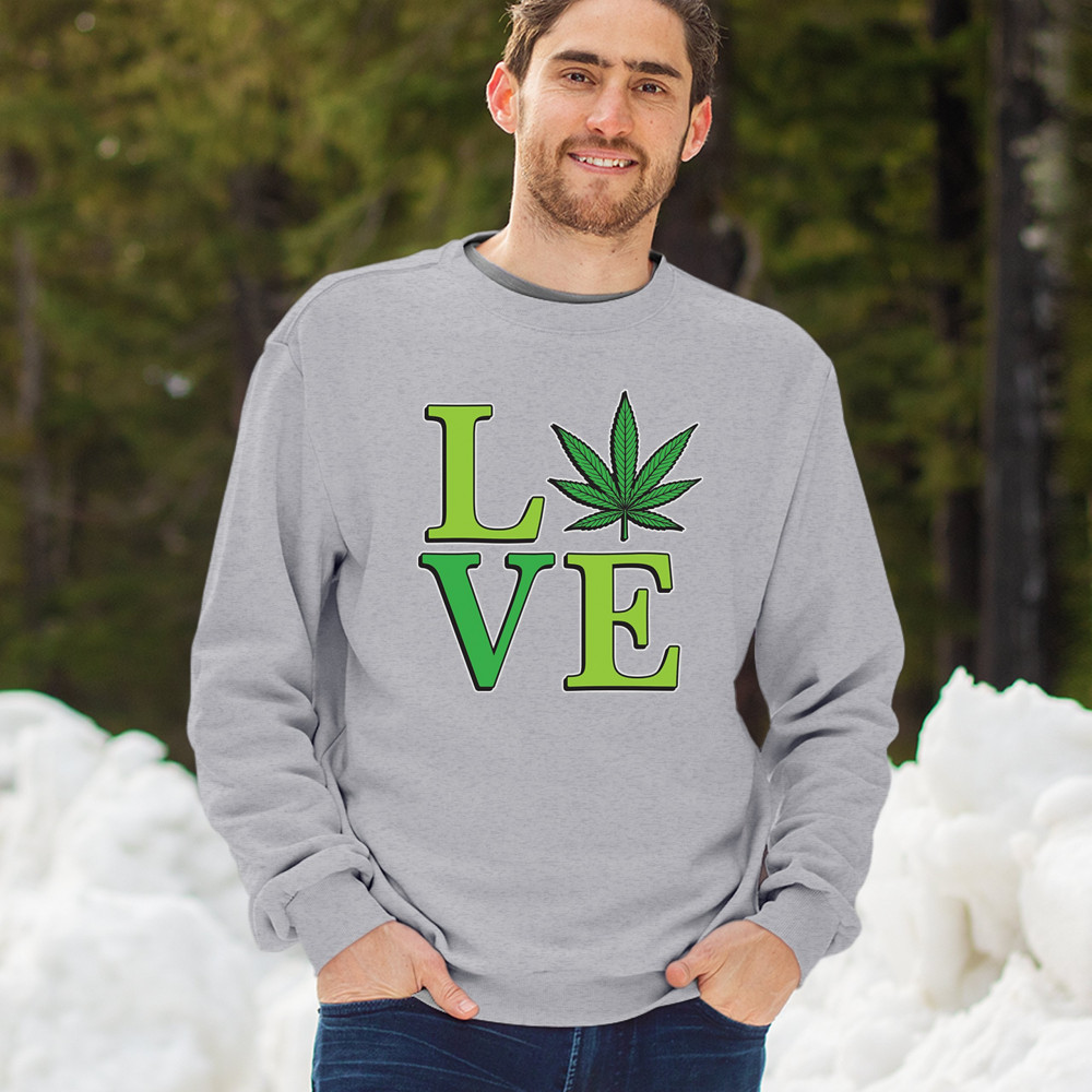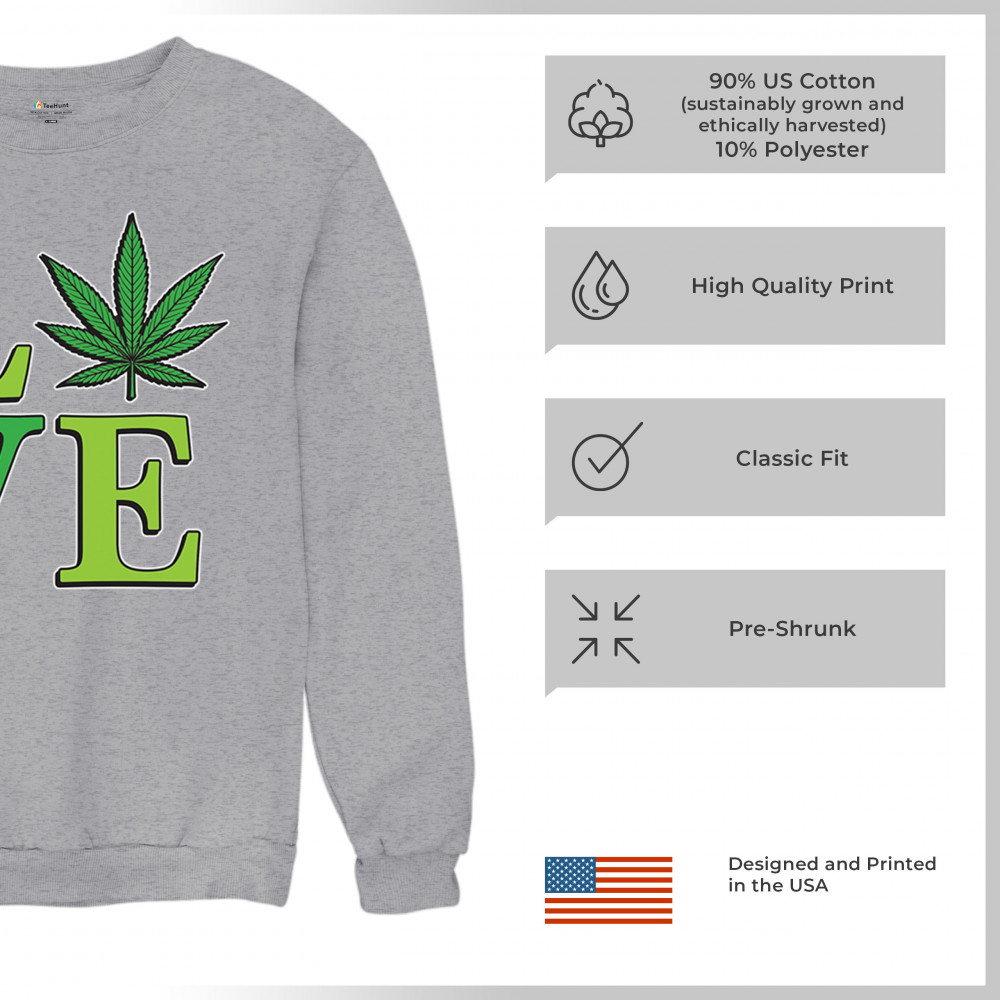LOVE design with a bold weed leaf. Perfect for 420 fans, stoners, cannabis lifestyle wear, green pride, and marijuana lovers.
