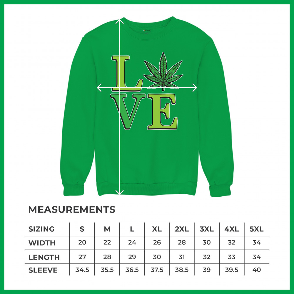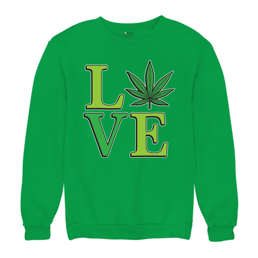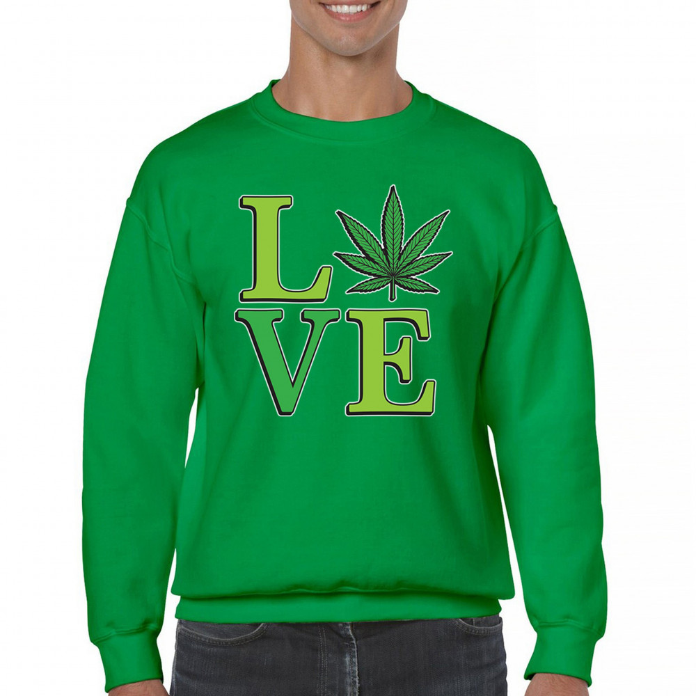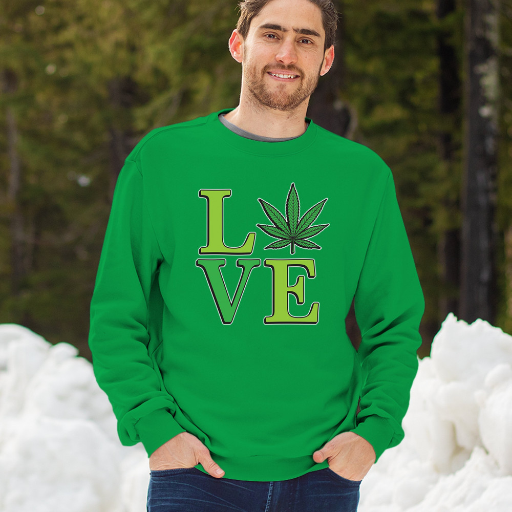 LOVE design with a bold weed leaf. Perfect for 420 fans, stoners, cannabis lifestyle wear, green pride, and marijuana lovers.