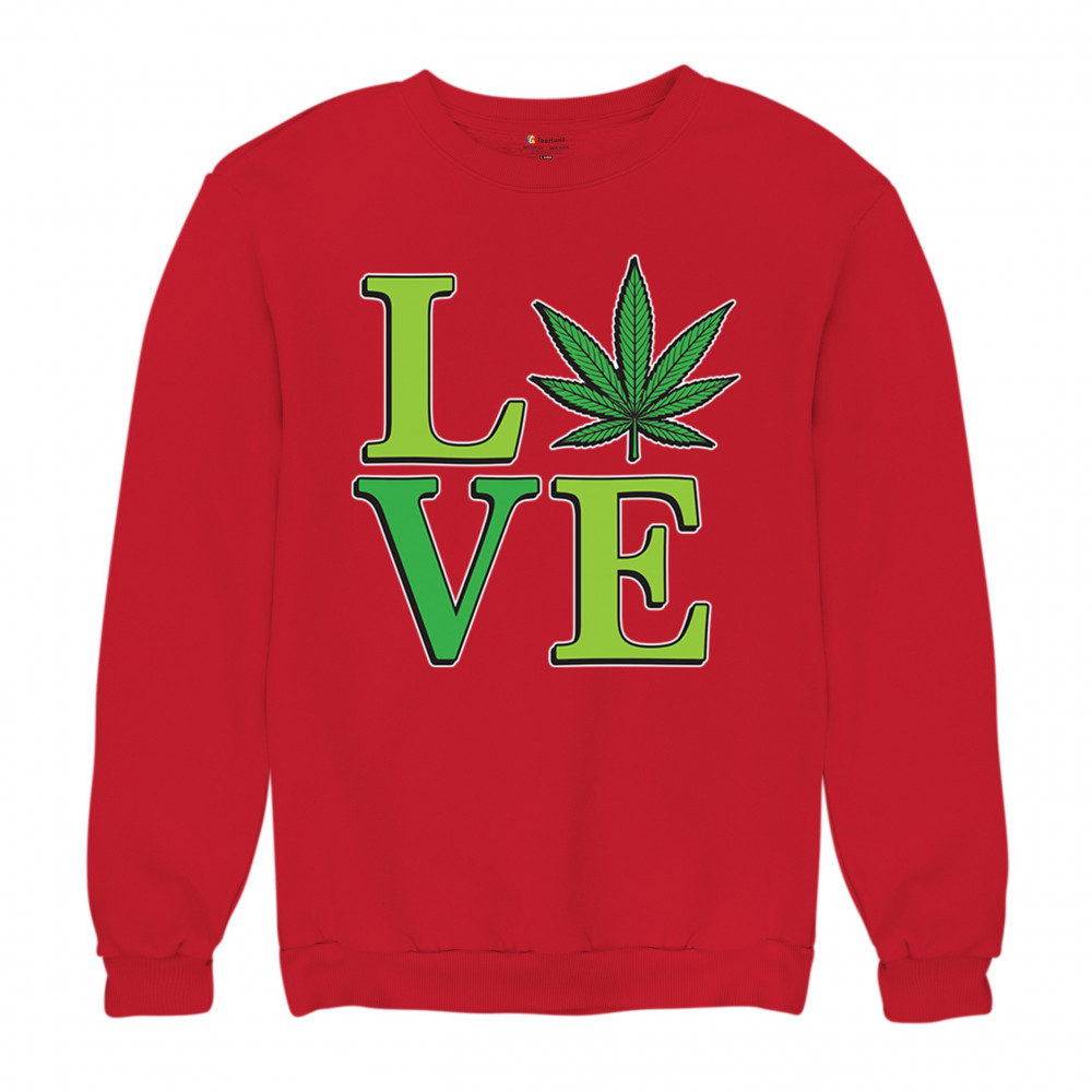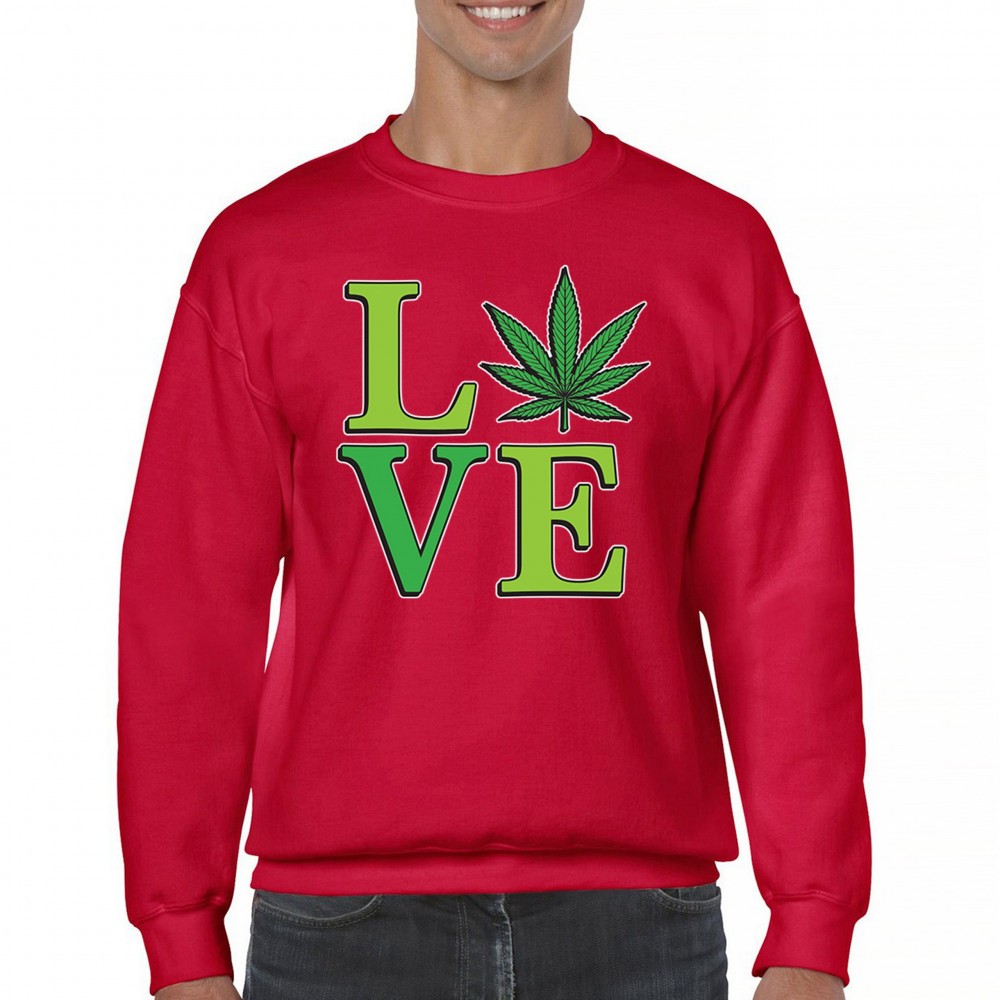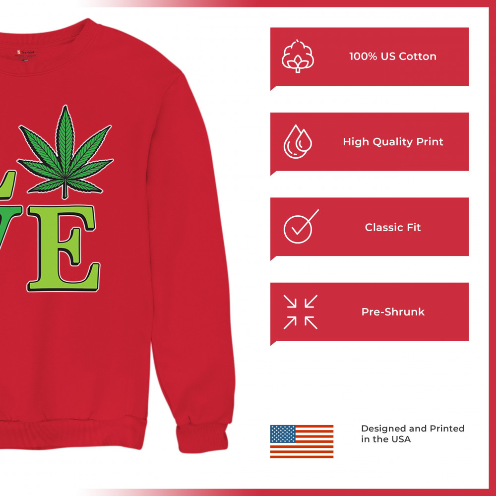 LOVE design with a bold weed leaf. Perfect for 420 fans, stoners, cannabis lifestyle wear, green pride, and marijuana lovers.