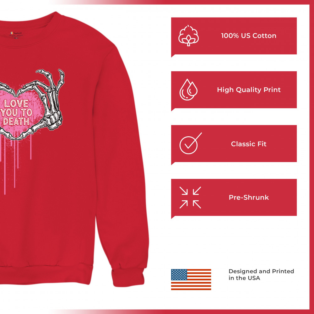Show your spooky side with this skeleton hands heart design featuring a pink background and the phrase "Love You to Death." A perfect piece for alternative couples, Halloween lovers, and romantic rebels who embrace both affection and dark humor. Great for spooky season, date nights, and alt fashion outfits.