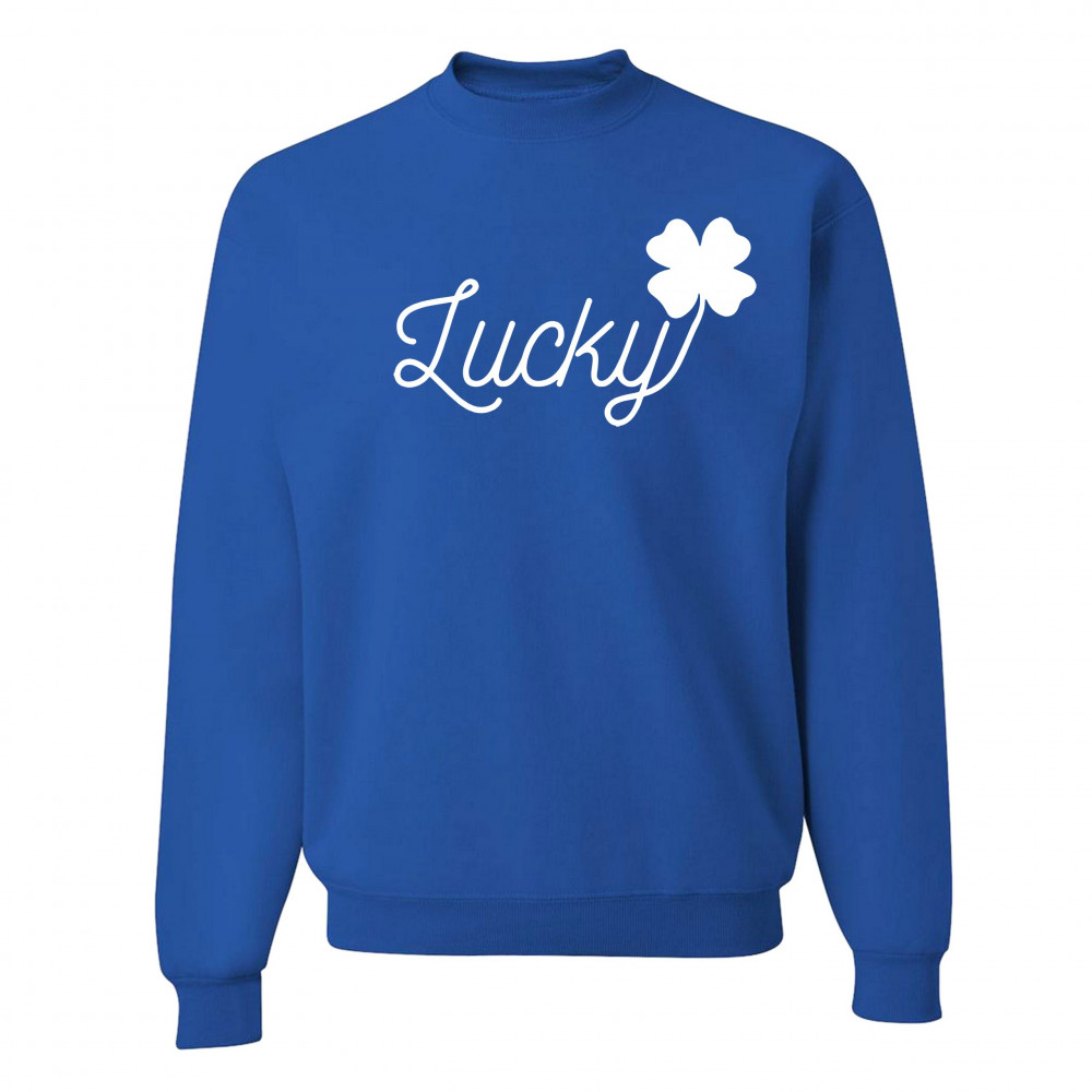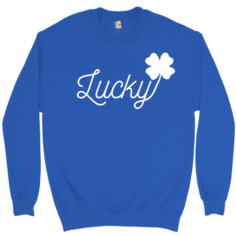 LUCKY SHAMROCK sweatshirt st. patrick's day funny holiday crewneck royal blue