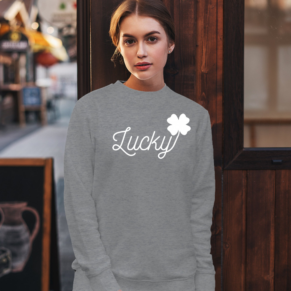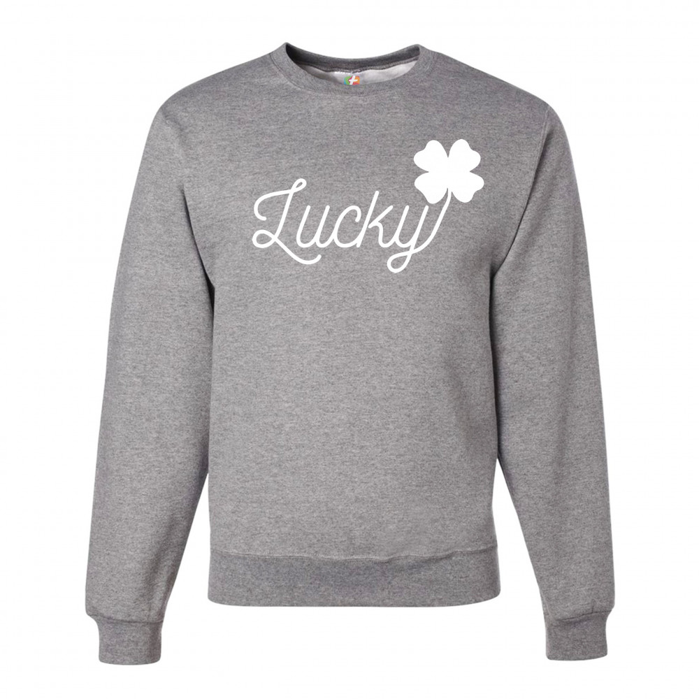 LUCKY SHAMROCK sweatshirt st. patrick's day funny holiday crewneck gray