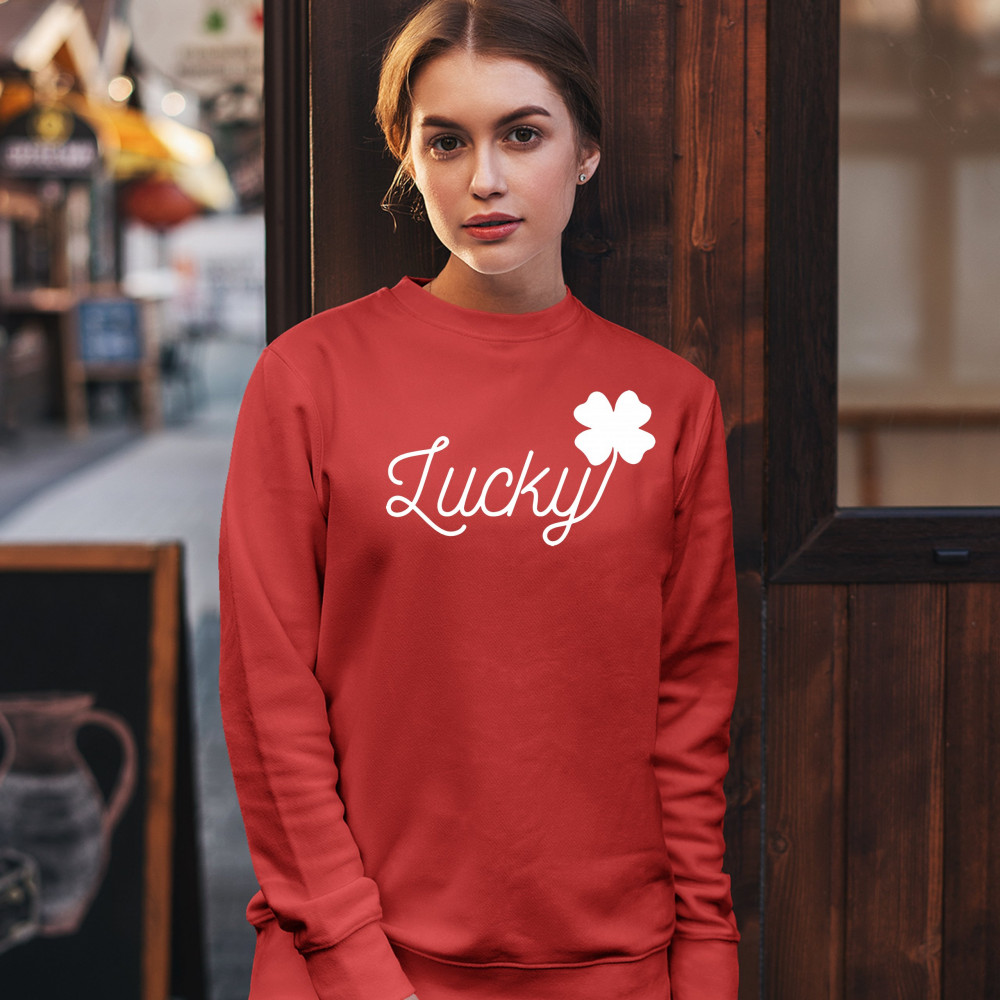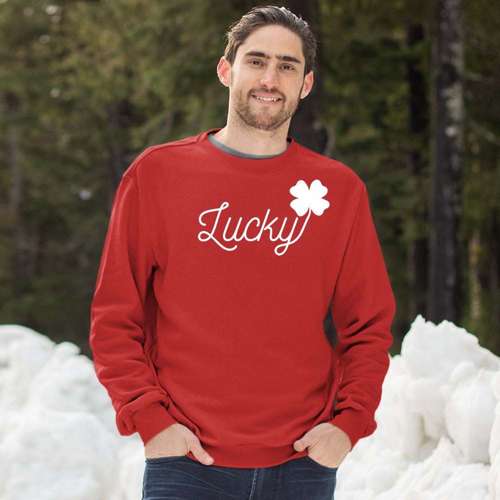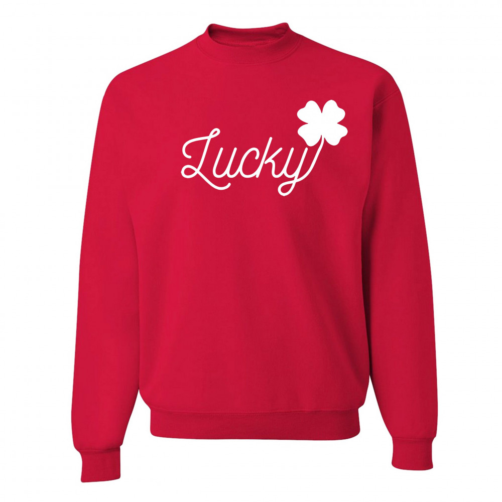 LUCKY SHAMROCK sweatshirt st. patrick's day funny holiday crewneck red