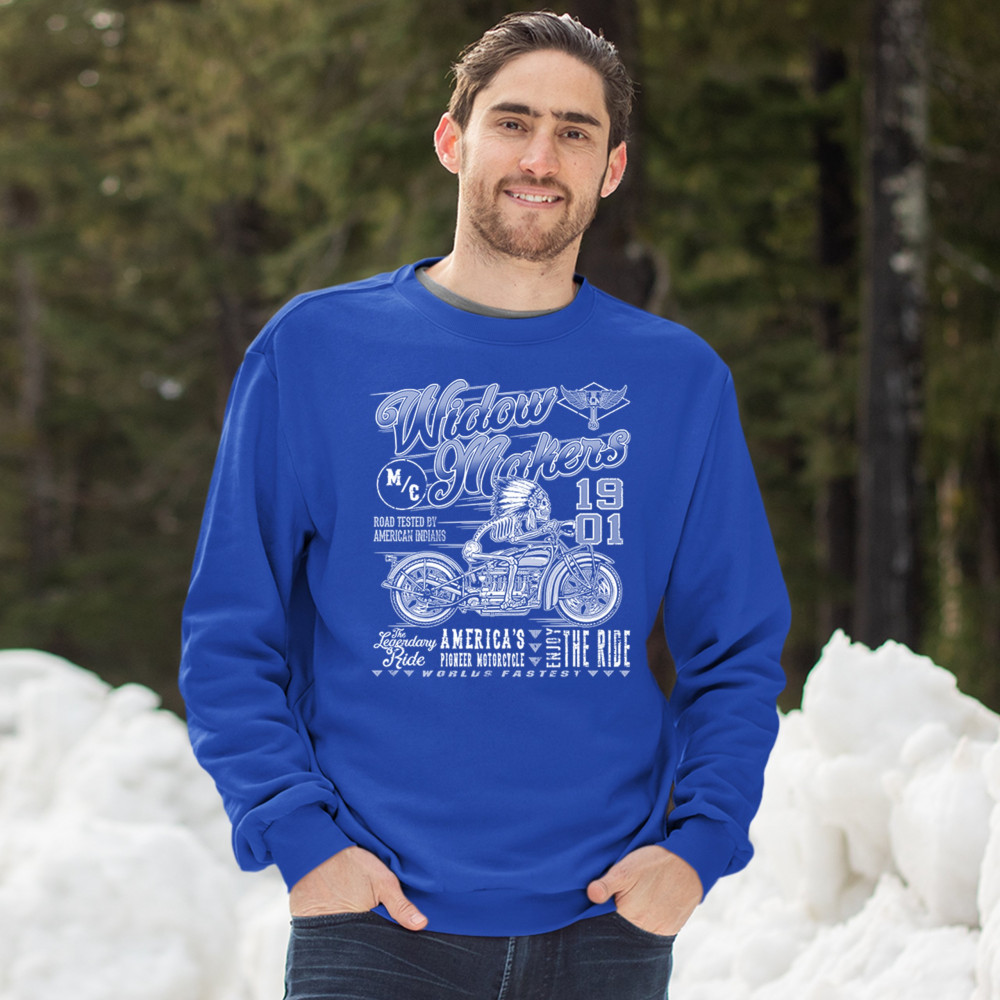 M/C WIDOWMAKERS 1901 sweatshirt native american bikers motorcycle club crewneck royal blue