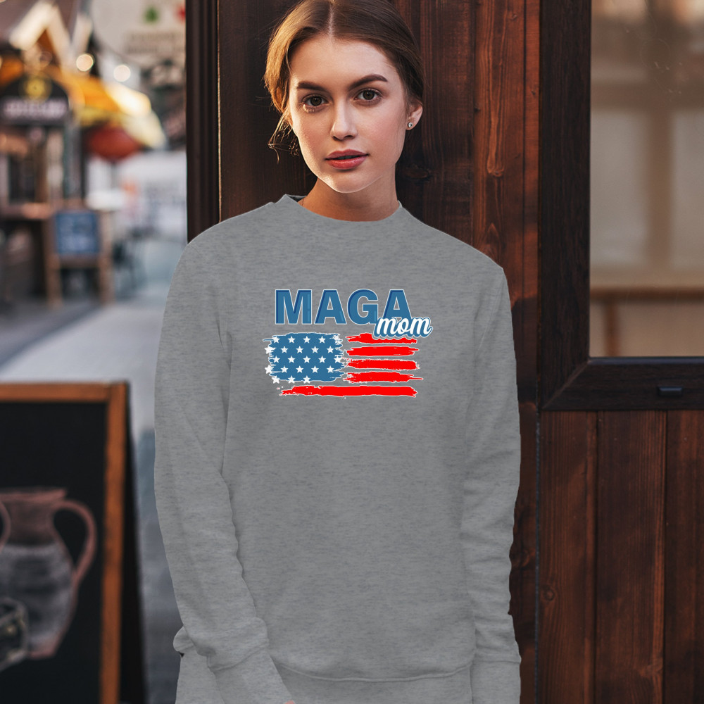 MAGA MOM AMERICAN FLAG sweatshirt donald trump 2020 keep america great crewneck gray