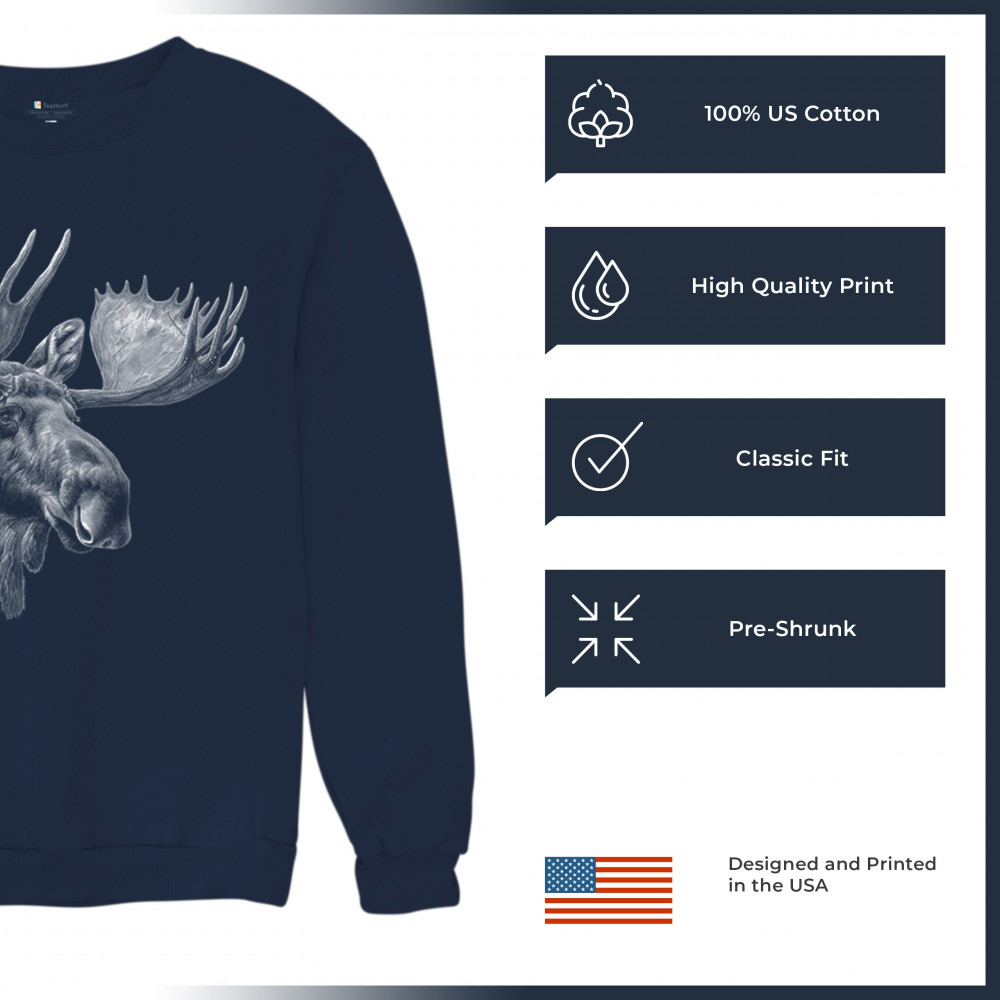 Celebrate the wilderness with this realistic bull moose head design. Rendered in crisp monochrome sketch style, it’s made for outdoorsmen, hunters, nature hikers, and wildlife lovers. From northern forests to cozy cabins, this bold look pays tribute to the calm strength and majesty of one of nature’s most iconic creatures.