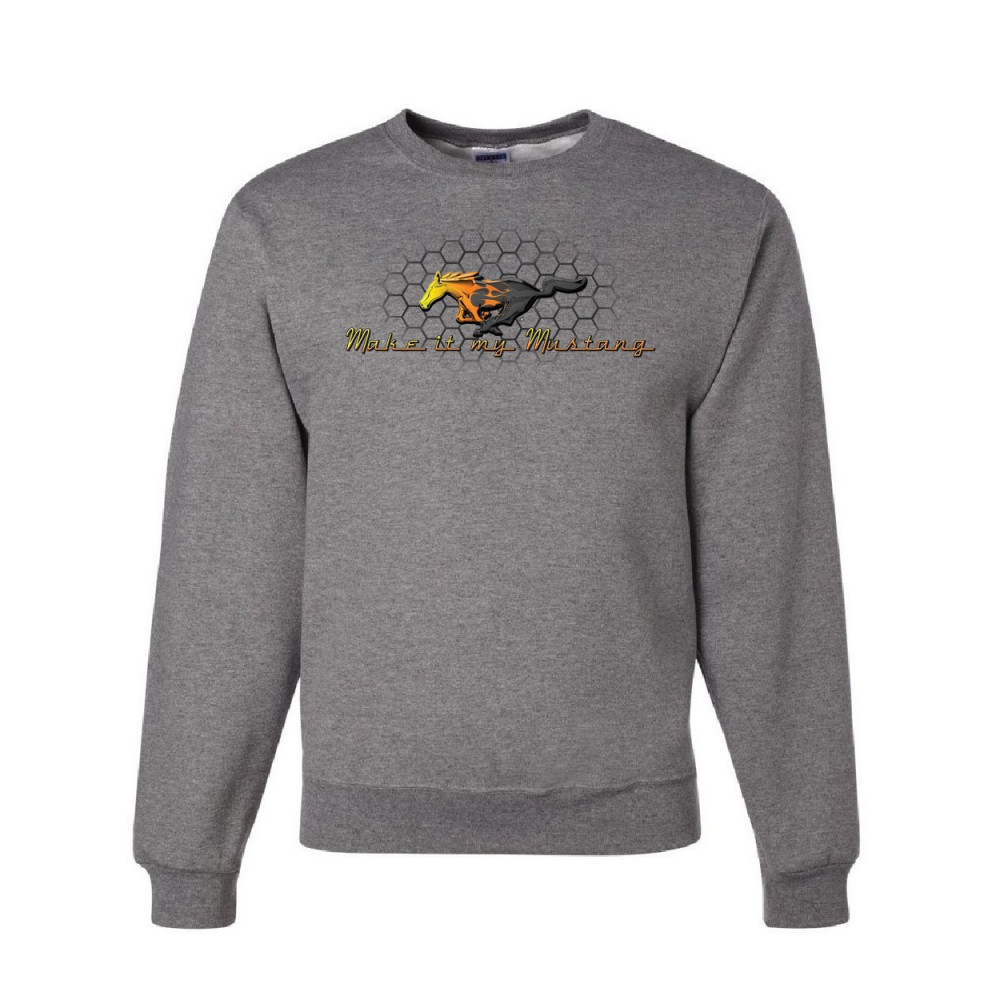 MAKE IT MY MUSTANG sweatshirt honeycomb american classic fire horse sweater gray