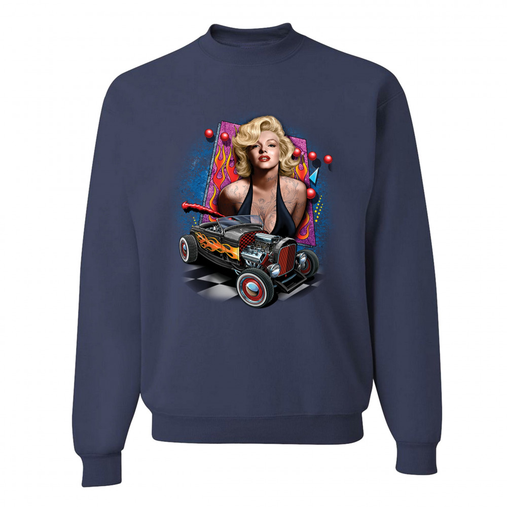 MARILYN MONROE HOT ROD sweatshirt vintage route 66 drag racing crewneck navy blue