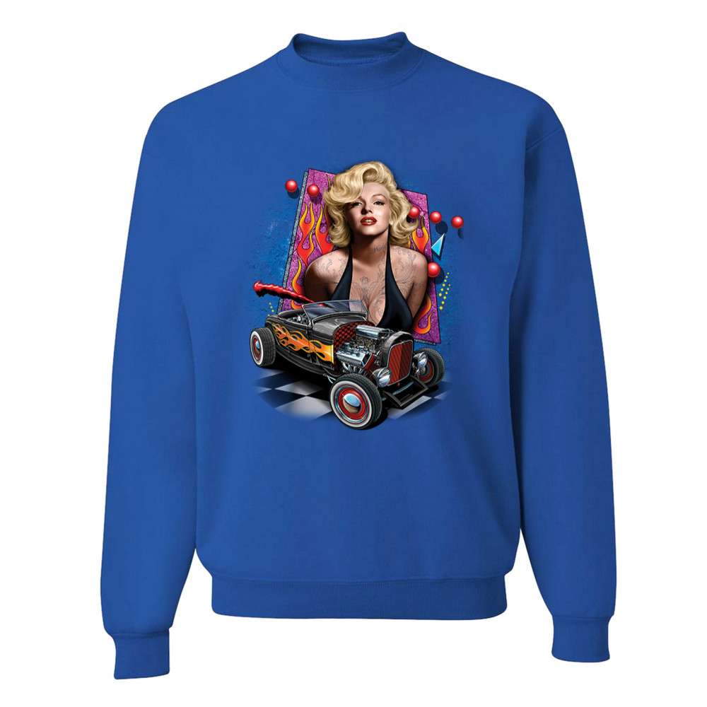 MARILYN MONROE HOT ROD sweatshirt vintage route 66 drag racing crewneck royal blue