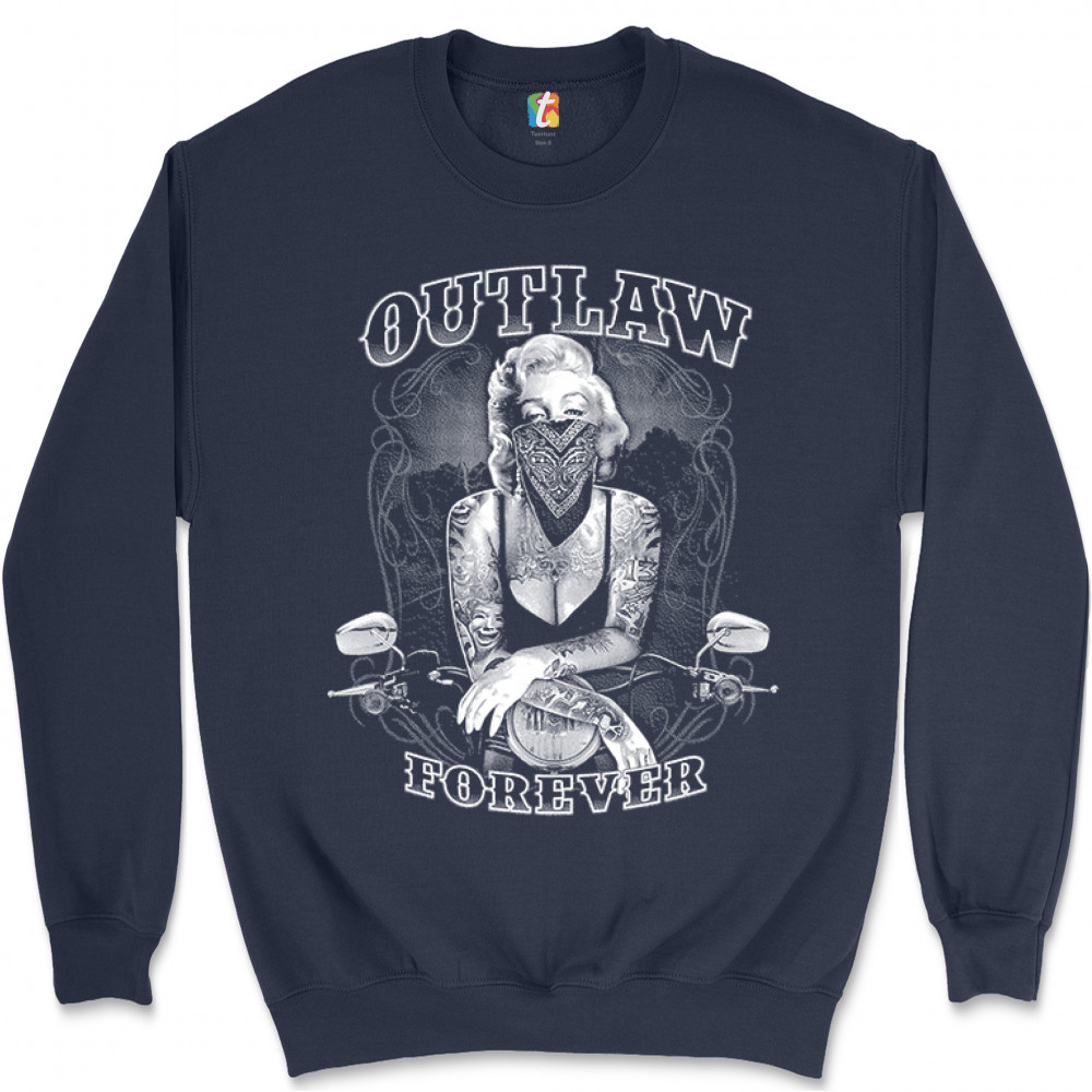 MARILYN MONROE OUTLAW FOREVER sweatshirt biker live to ride motorcycle crewneck navy blue