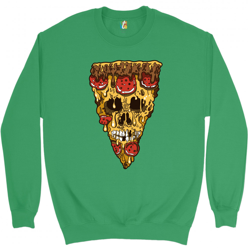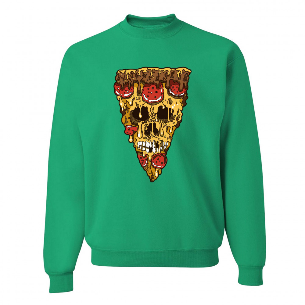 MELTING PIZZA ZOMBIE FACE sweatshirt horror halloween scary undead crewneck green