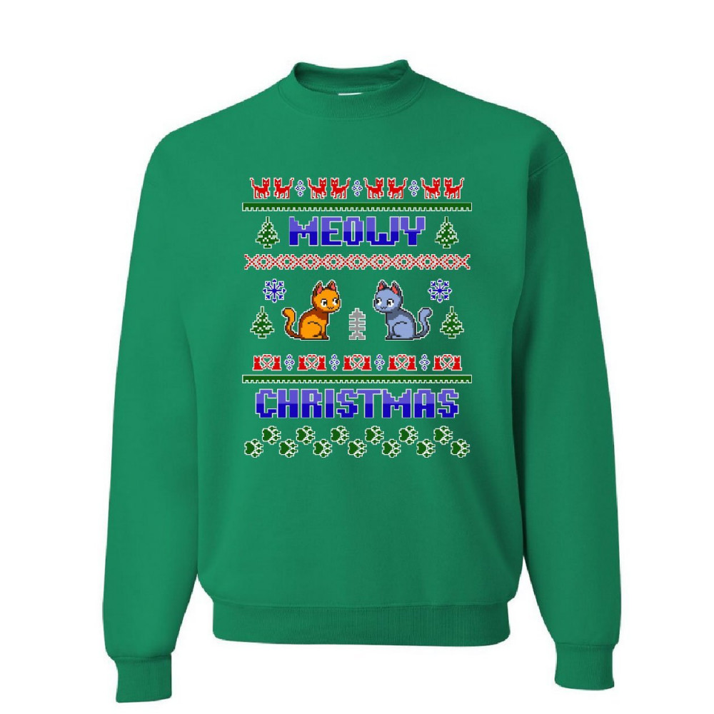 MEOWY CHRISTMAS UGLY SWEATER sweatshirt cat kitten purr merry xmas sweater green